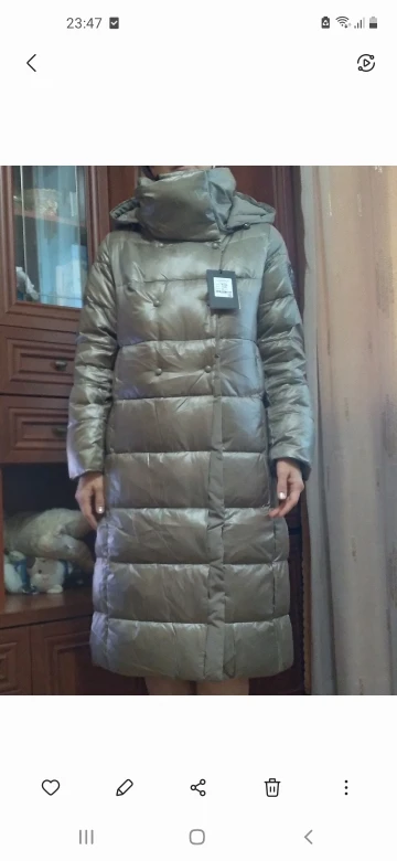 Мне очень понравилось пальто, просто бомба! Цвет крутой, как хамелеон, я все понять не могла,почему у продавца светлое оно на фото,а так и есть, при дневном свете,ну может чуть темнее, серо-лиловое.Смотрится,как будто за 25000,а не за 5000. Воротник внутри отстегивается для стирки.ОГ у меня 106, размер самый большой подошел,но думаю и меньше было бы можно.Продавец советовал взять больше, я согласилась и он поменял размер,спасибо большое! Да,еще в нем в лютый мороз,мне кажется,тепло будет.