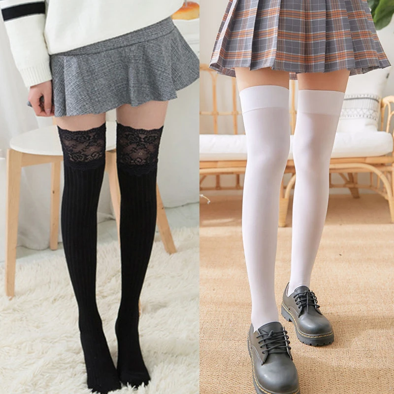 Сексуальные кружевные чулки для женщин и девочек, однотонные чулки ...