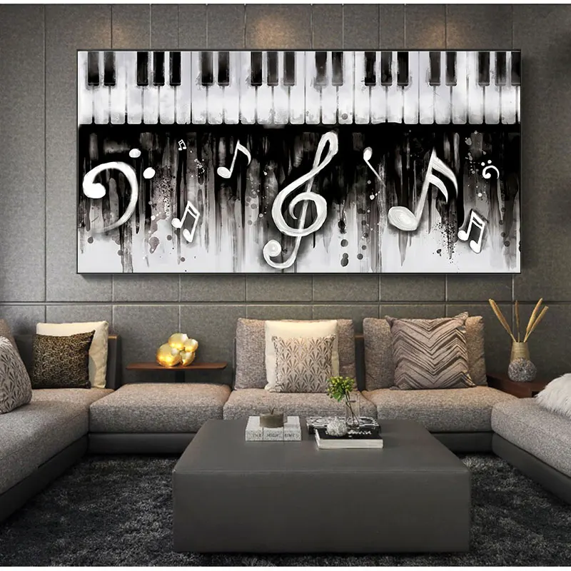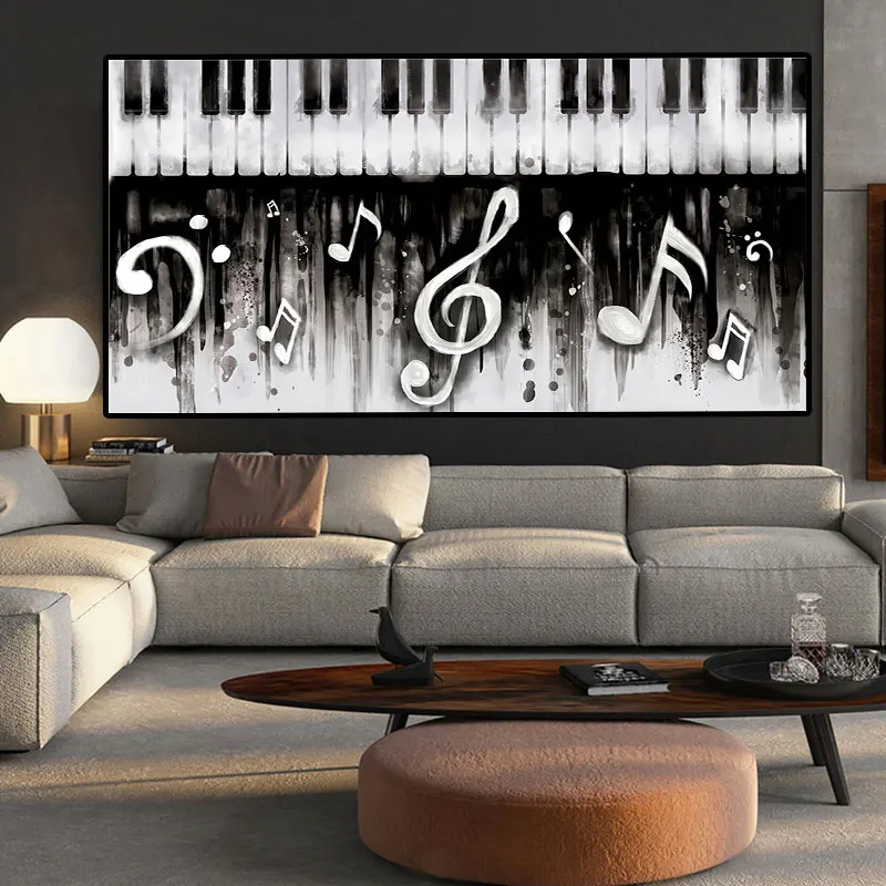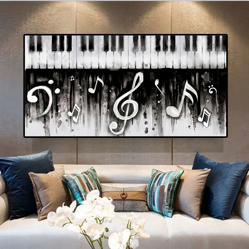 Черно-белая музыкальная клавиатура с пианино, Картина на холсте, настенное искусство, современный постер и печать в гостиной, домашний декор