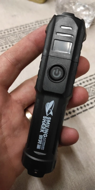 фонарик маленький меньше ладошки, хлипенький платсмасовый, думаю если уронить то розлетится на части!