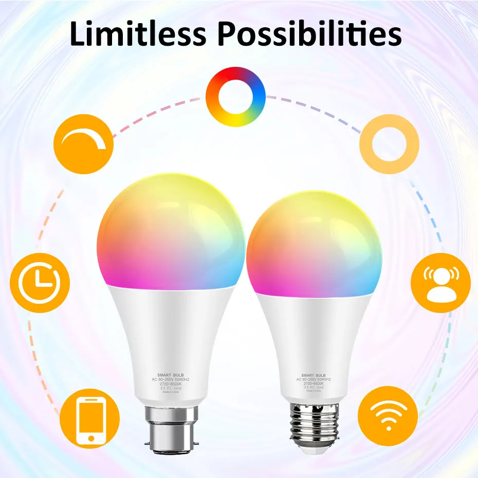 4.Энергосбережение--- E27 база 15 Вт умный светодиодный светильник использует на 80% меньше энергии, чем обычные лампы накаливания. Регулируемый холодный светильник, теплый светильник и изменение цвета. 1500 лм, достаточно, чтобы светильник вашу комнату.