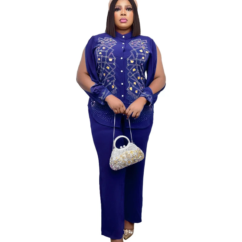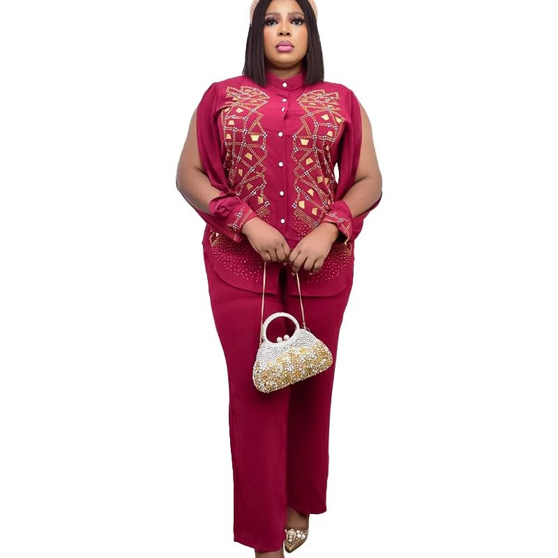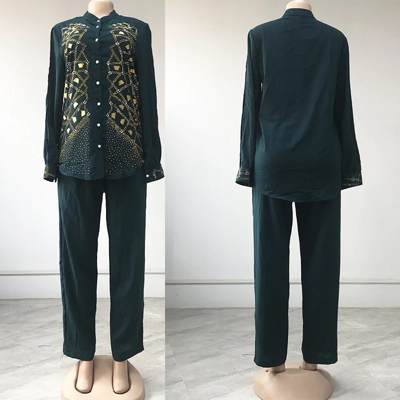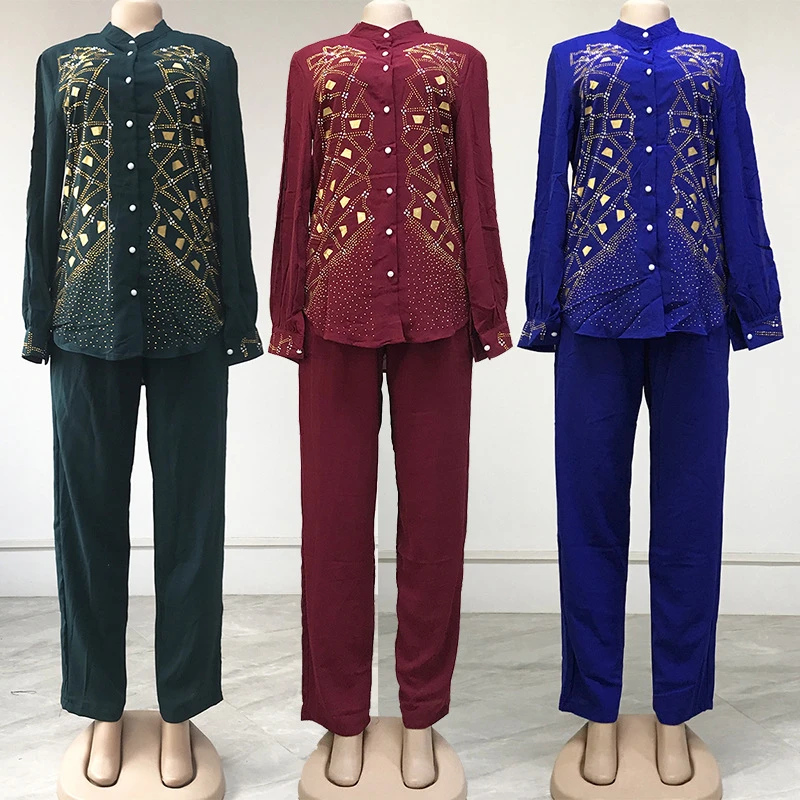 Африканские комплекты для женщин, осень 2021, с длинным рукавом, бисером, блестками, Африканский базин, мешковатые брюки, рок-стиль, Дашики, известный женский костюм