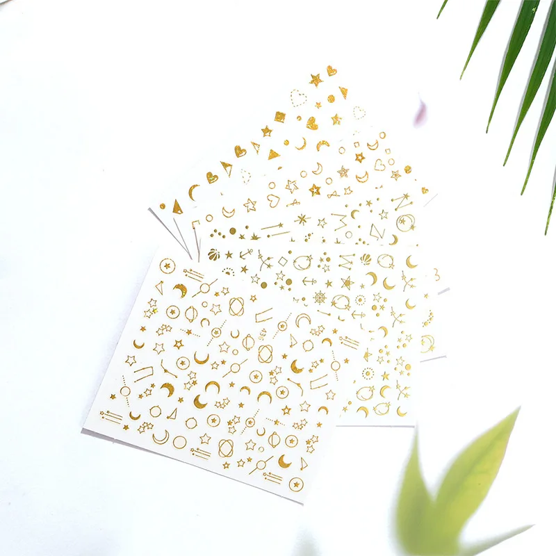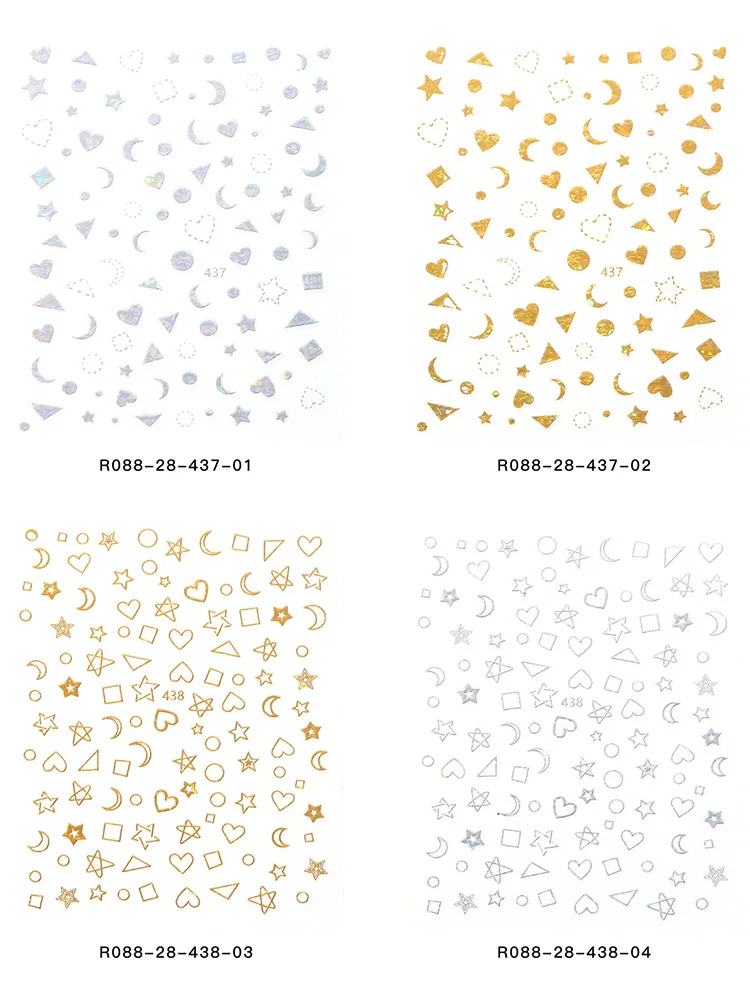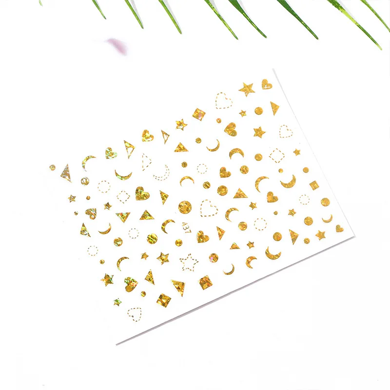 Золотые и серебряные 3D-Наклейки для ногтей с заклепками, полые луна, звезда, треугольник, сердце, фотоклейкие декоративные материалы для маникюра и дизайна ногтей