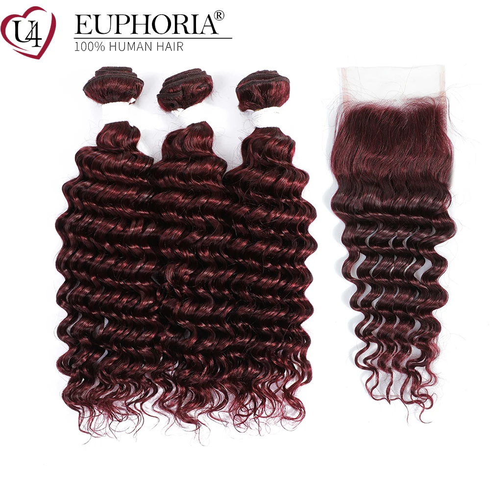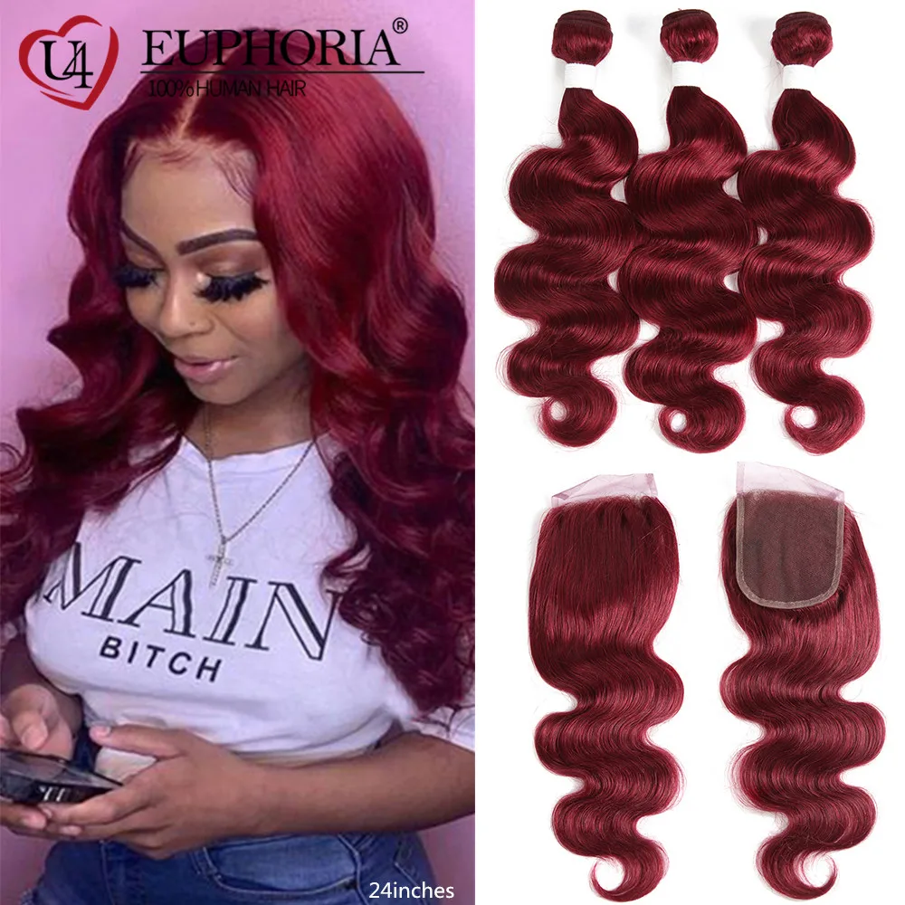 Body Wave Bundles With Lace Closure 4x4 Blonde 27 Red Burg Hair Brazilian Remy Human Hair 3 Bundles With Lace Closure Euphoria