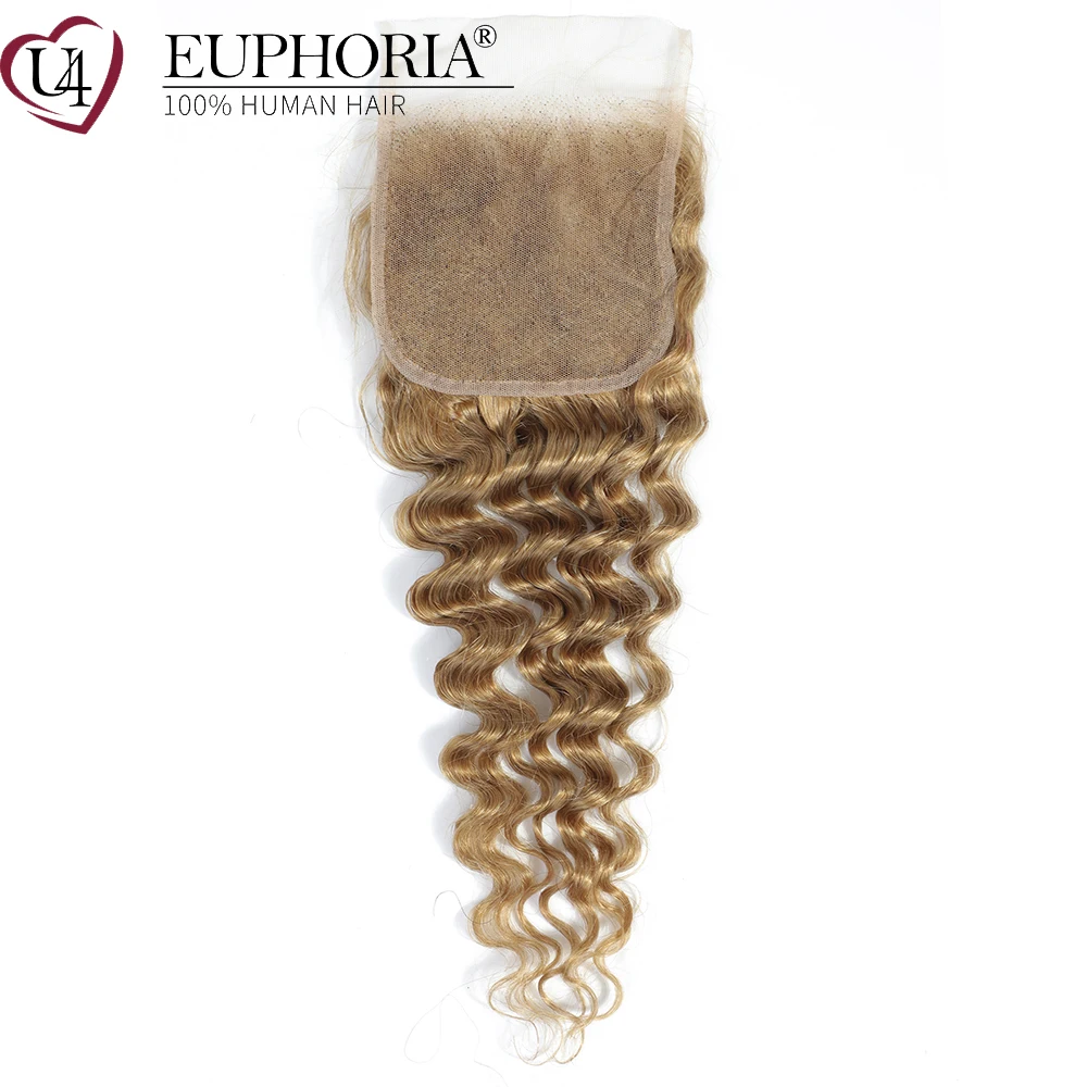 99J бразильские человеческие волосы Remy с глубокой волной, 3 пряди с 4x4 кружевами пряди с кружевной застежкой, блонд 27 30, цветная молочья