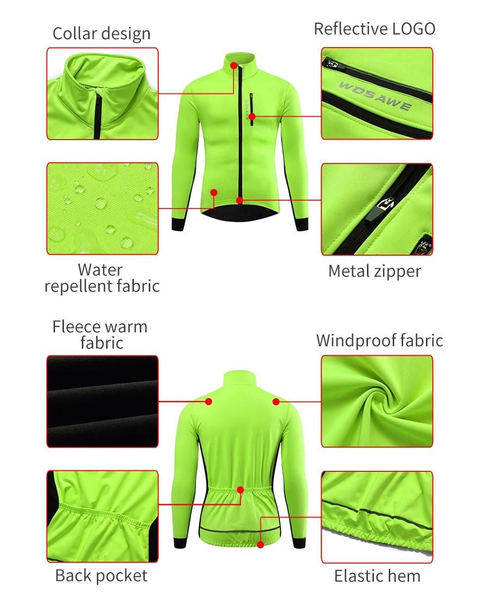 Велосипедные куртки WOSAWE, Мужская зимняя термокуртка для бега, ветрозащитная Светоотражающая ветровка из мягкого материала, велосипедная одежда