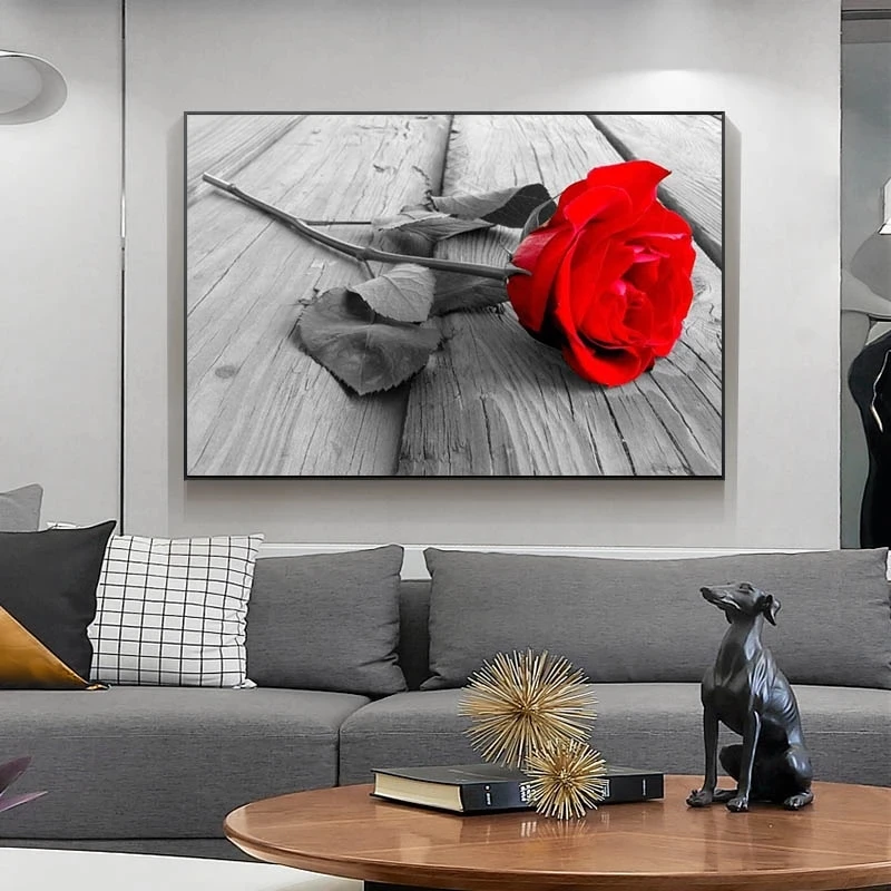 Современный Романтический настенный художественный черно-белый фон красная роза плакат и печать на холсте картина для украшения гостиной