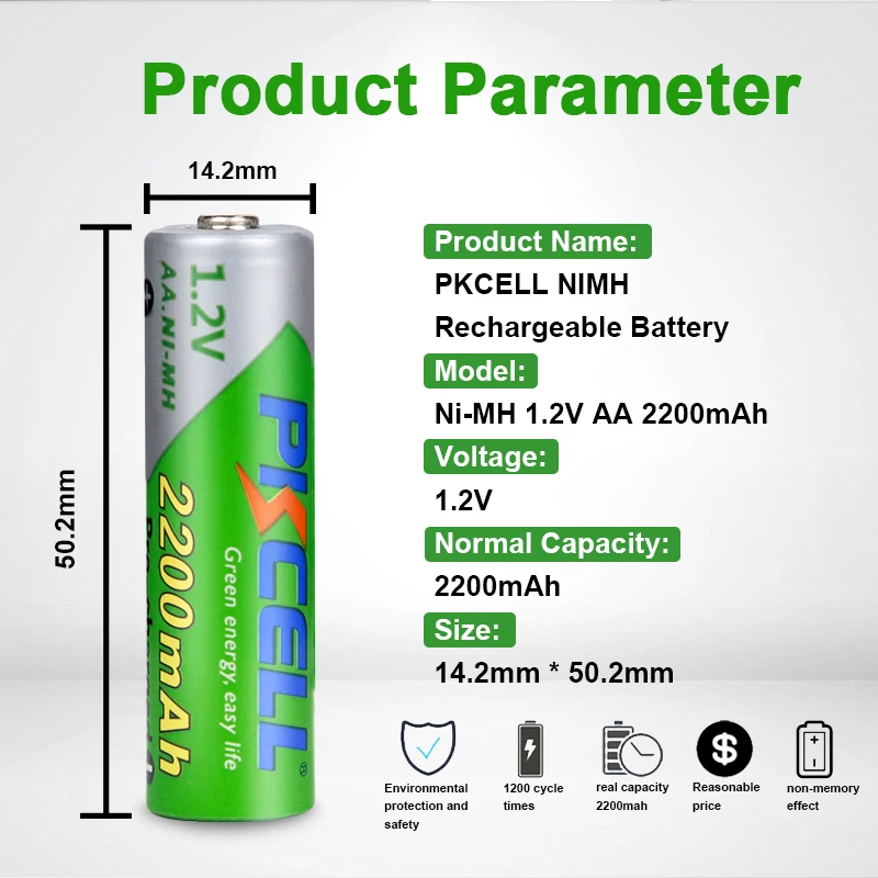 Аккумуляторная батарея PKCELL AA, 32 шт., 1,2 в, Ni-MH, предварительно Заряженная, 2200 мАч
