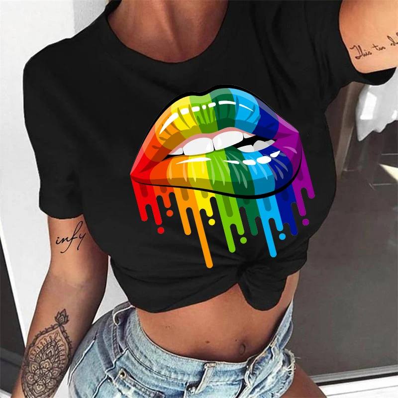 Футболка WVIOCE с рисунком губ и губ, женские топы с круглым вырезо...