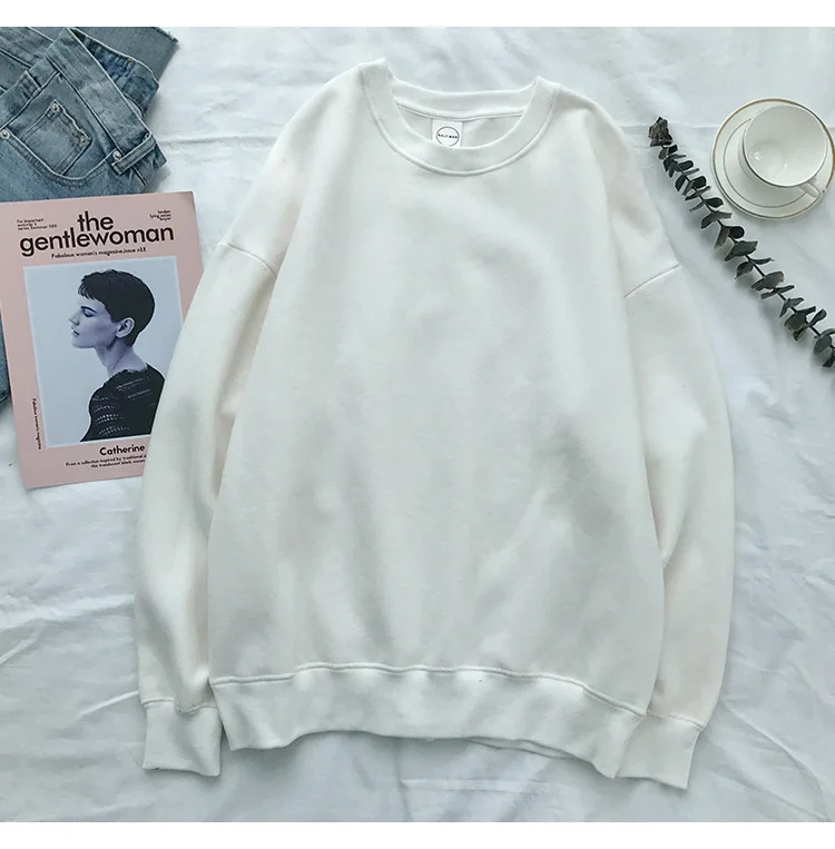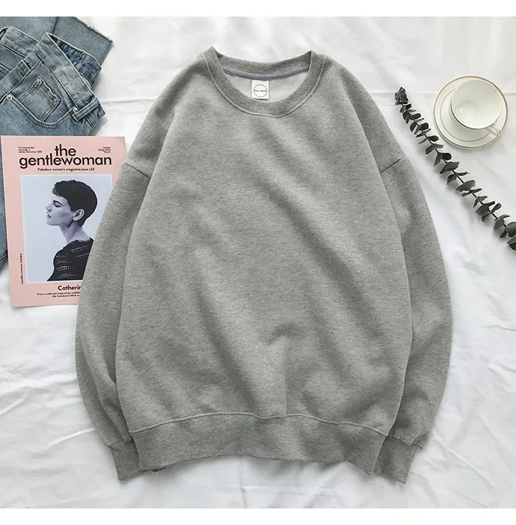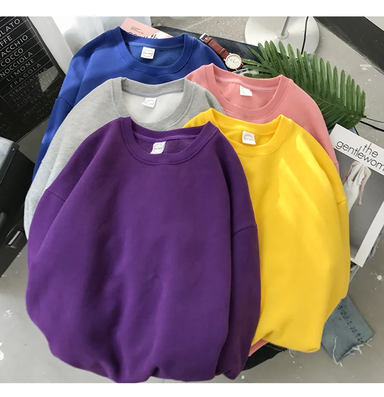 Однотонная парная толстовка с круглым вырезом, Свитшот оверсайз 202...