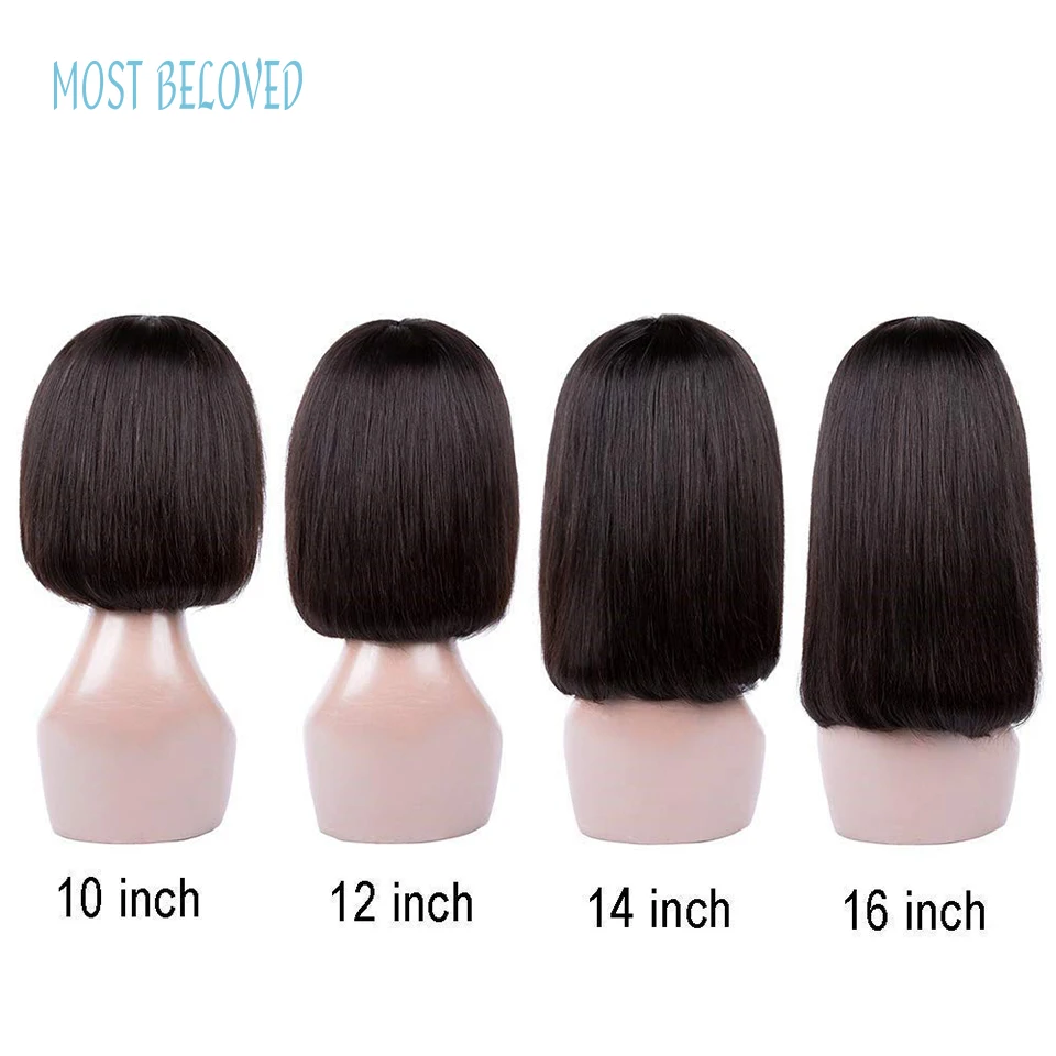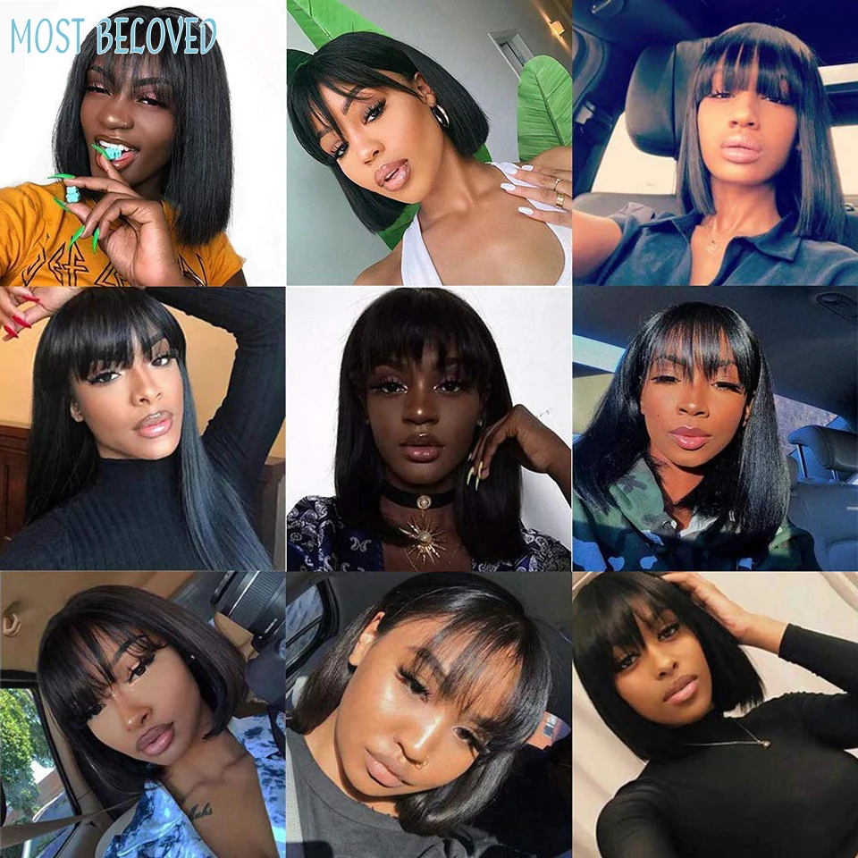 Короткий прямой парик Боб с челкой человеческие волосы бесклеевой парик полная машина человеческих волос парики натуральные черные прямые салонные парики