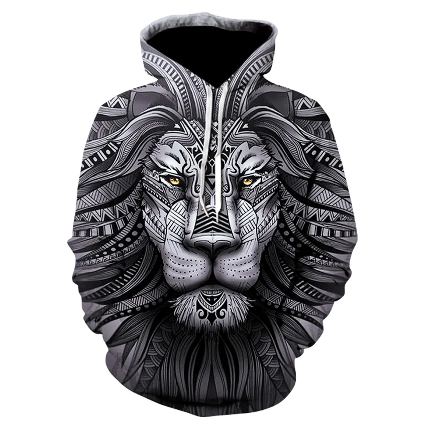 Толстовка мужская с 3D-принтом льва, Модный свитшот, повседневный с...