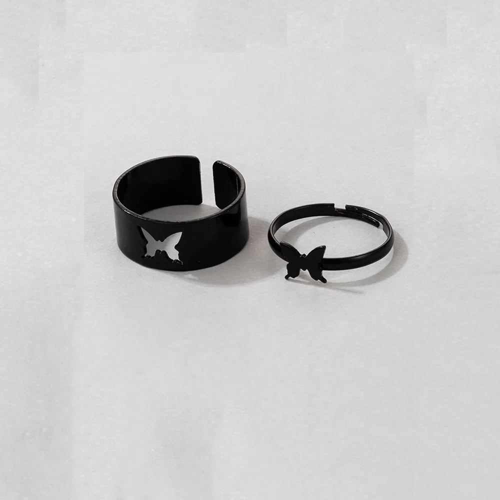 Винтажные Простые открытые кольца в виде животных в виде Лютика для женщин и девушек, готические ювелирные изделия, набор из 2 черных колец в стиле панк для пар