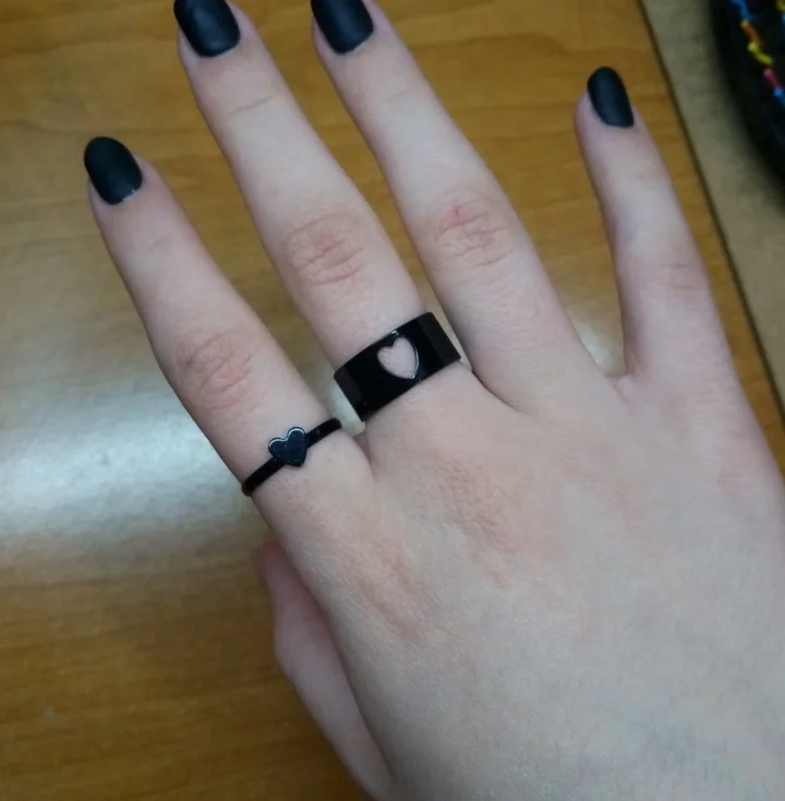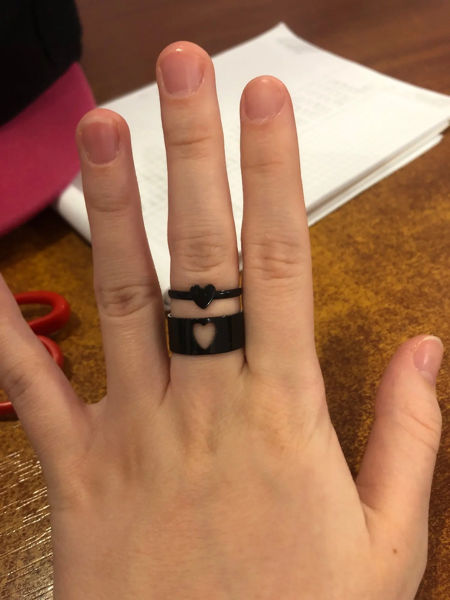 Красивые кольца, единственное что — края немного давят на палец и могут поцарапать. Идеальны, если у вас есть друзья, которым вы хотите подарить. Пришло сравнительно быстро. В целом я довольна покупкой.