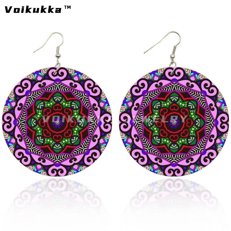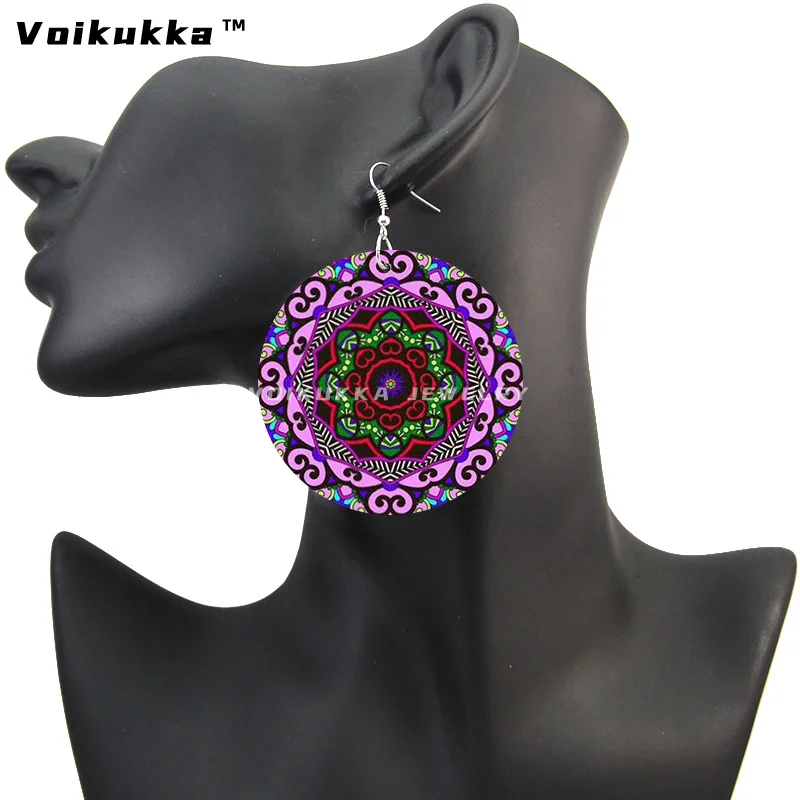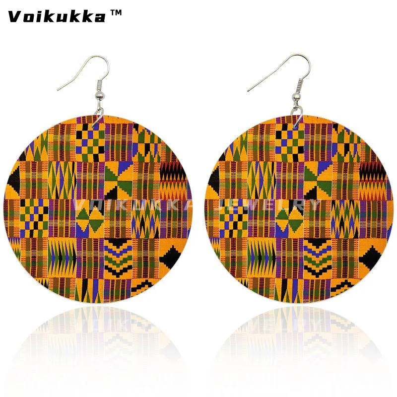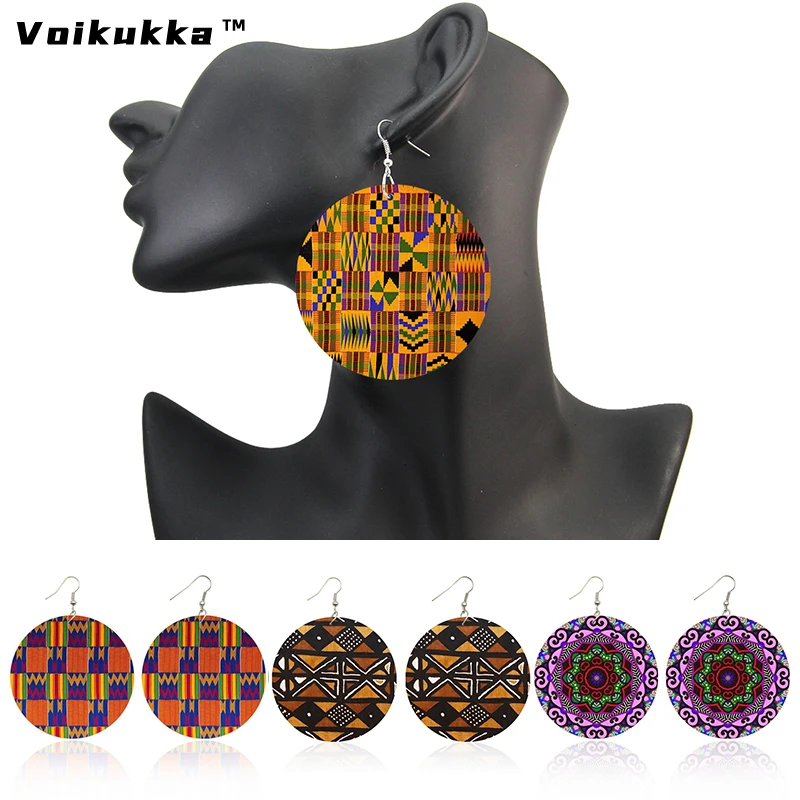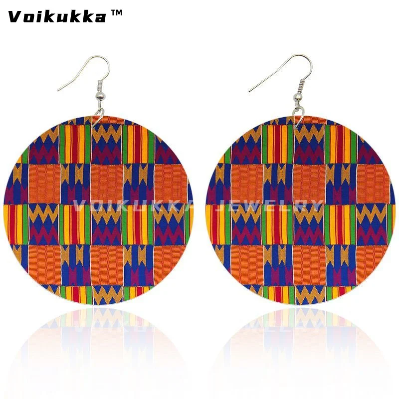 Voikukka ювелирные изделия горячая Распродажа Африканская Этническая ткань цветок с обеих сторон Печать Женщины Симпатичные Необычные Модные серьги-кольца для подарка
