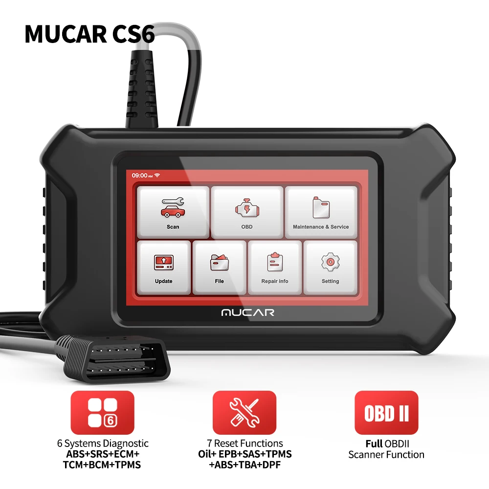 MUCAR CS6 OBD2 Сканер ABS SRS TCM TPMS Считыватель кода двигателя Авто диагностический инструмент Масло EPB SAS TBA TPMS ABS Сбрасывает бесплатно для всех автомобилей