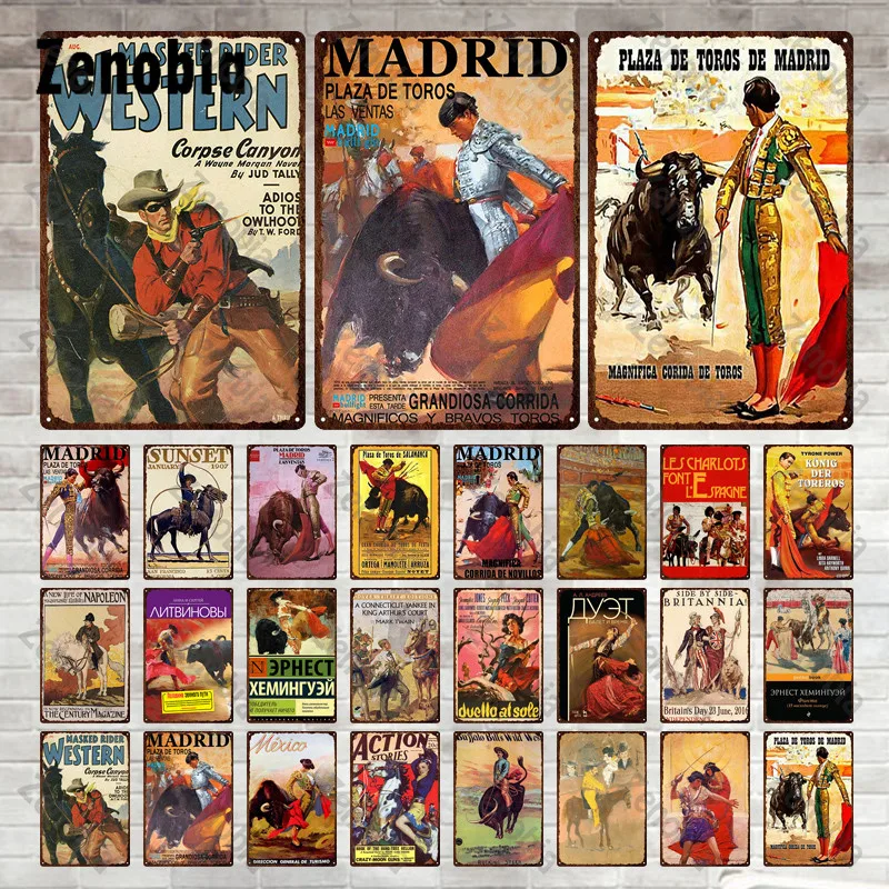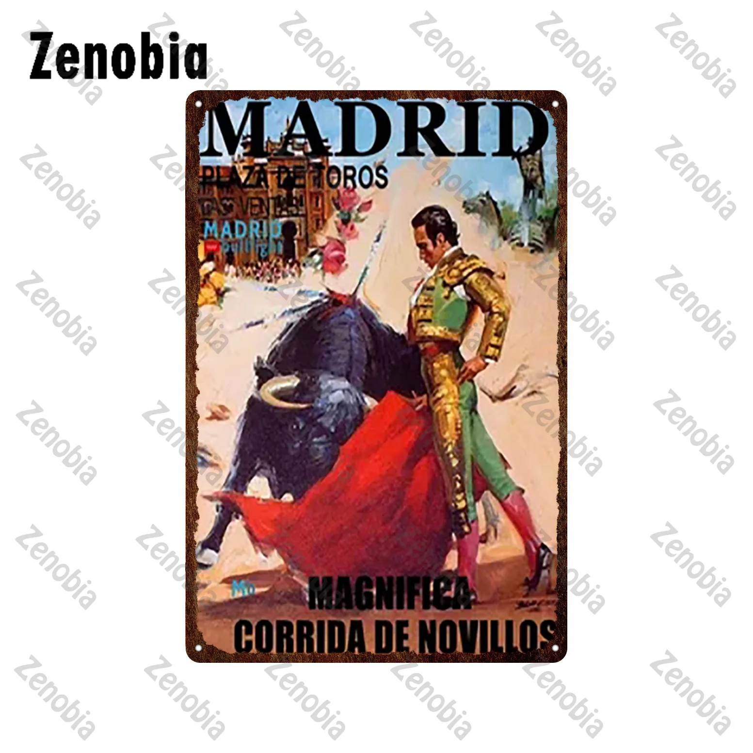Металлический знак, Настенный декор, Bullfighting Madrid, Западная декоративная Оловянная пластина, металлический постер, украшение для дома, настенные наклейки