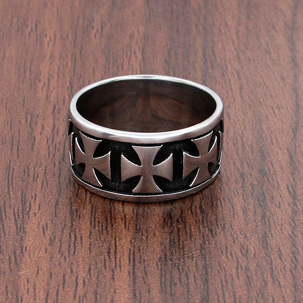 Мужское кольцо из нержавеющей стали в стиле панк, круглое простое кольцо с железным крестом в немецком стиле, Ювелирное Украшение для мальчиков и байкеров, подарок на вечеринку, оптовая продажа, размер 8-13