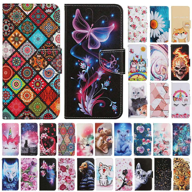 Feature 2Animal Flower Painted Leather Phone Case Cat Wolf Butterfly Cover