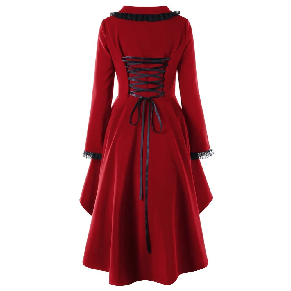 Женское платье в стиле стимпанк, элегантное платье в викторианском стиле средневековой высоты для танцев на осень и зиму, кружевное платье с вырезом лодочкой
