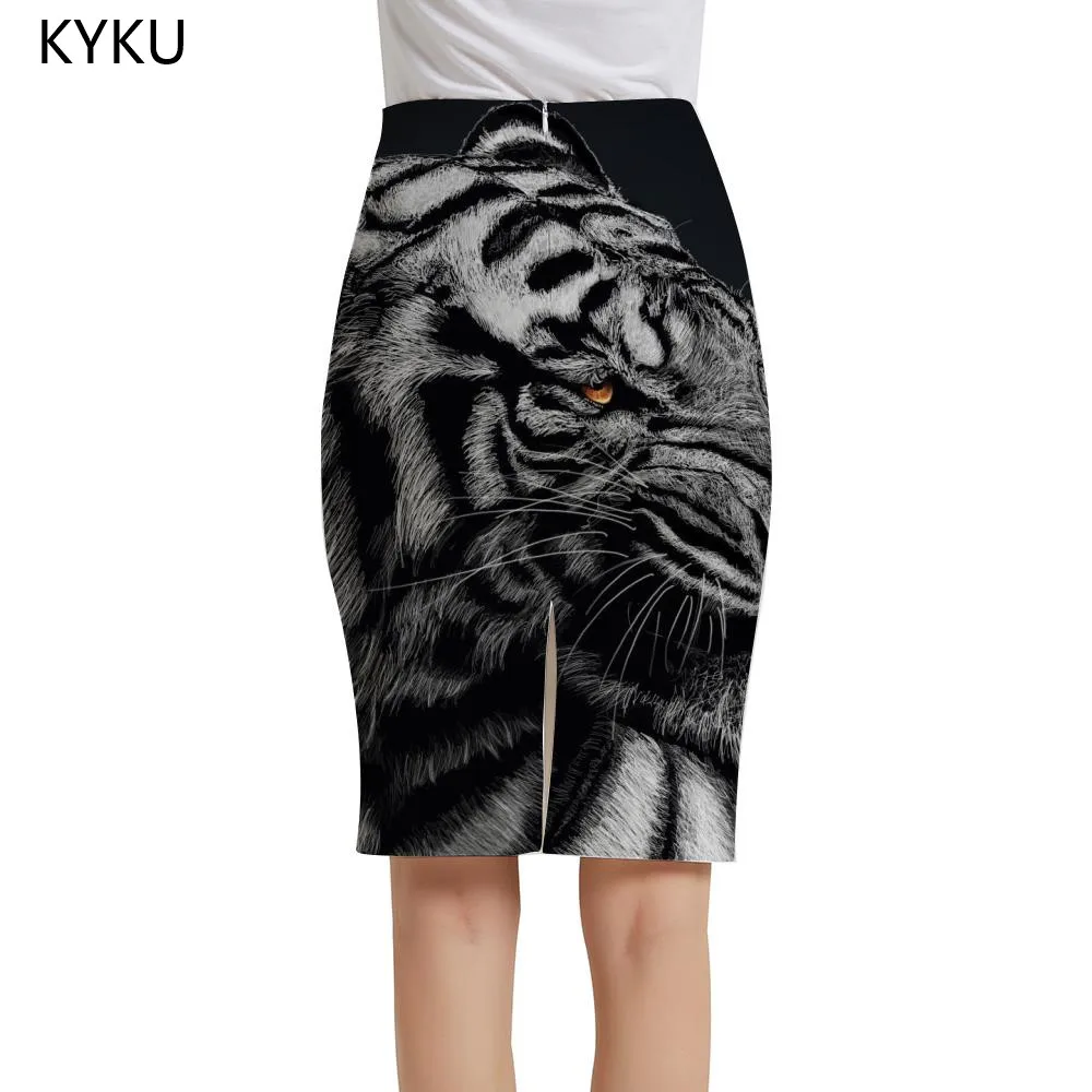 Женская юбка-карандаш KYKU, летняя юбка с 3D-принтом тигра и рыб