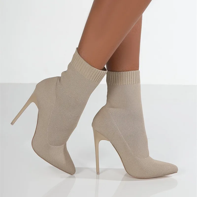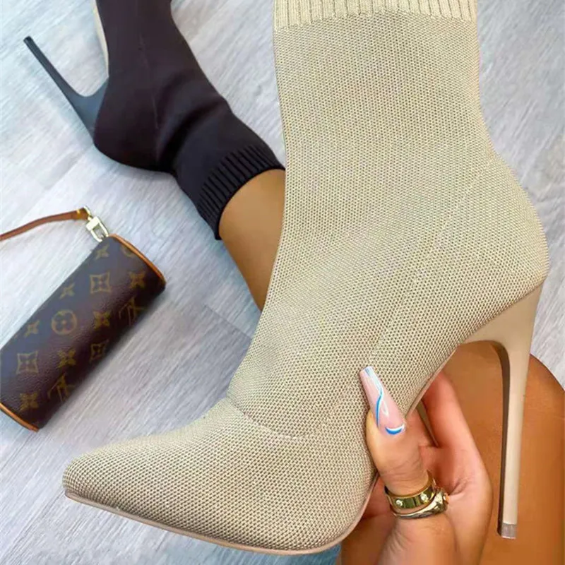 Осенние женские носки и сапоги, модные однотонные зимние короткие женские сапоги на шпильке, женские вязаные сапоги на высоком каблуке