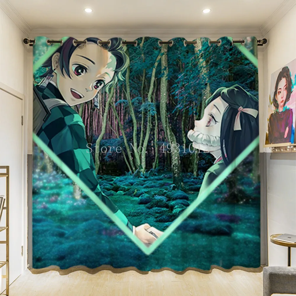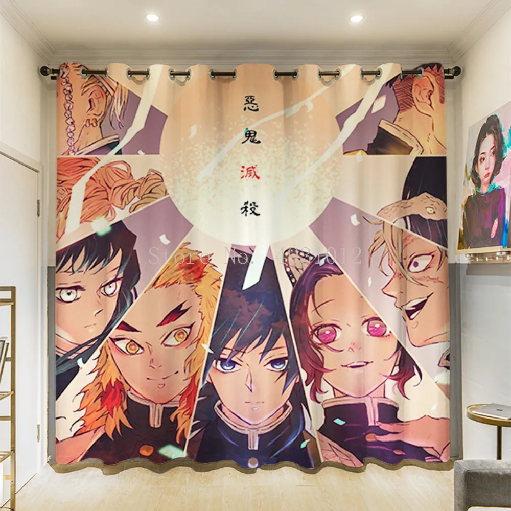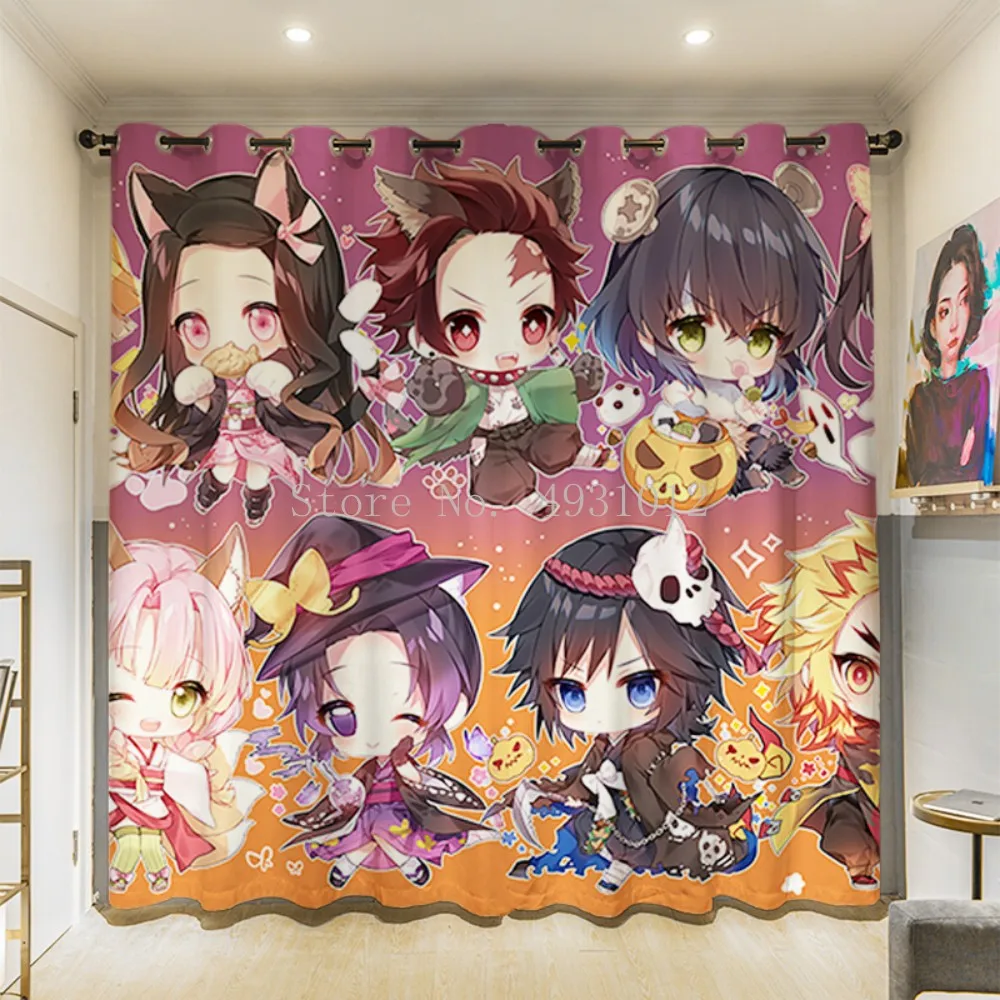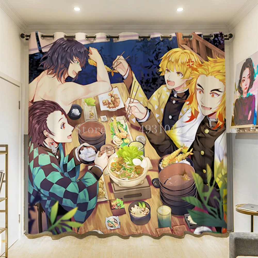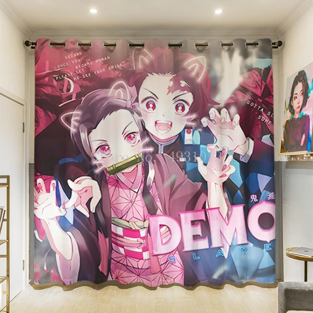 Японские занавески в стиле аниме для спальни, гостиной, занавески на окна рассекающий демонов, подарки для мальчиков и девочек, затемняющие изоляционные Полиэстеровые занавески