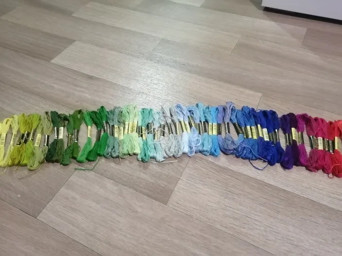 Нити пришли вовремя, но встретились повторяющиеся цвета также минусом считаю не самую лучшую упаковку - нити прилипают к стикерам соседних мотков, их нужно очень аккуратно отделять потом. В общем, напихивать их таким образом было не самым лучшим решением