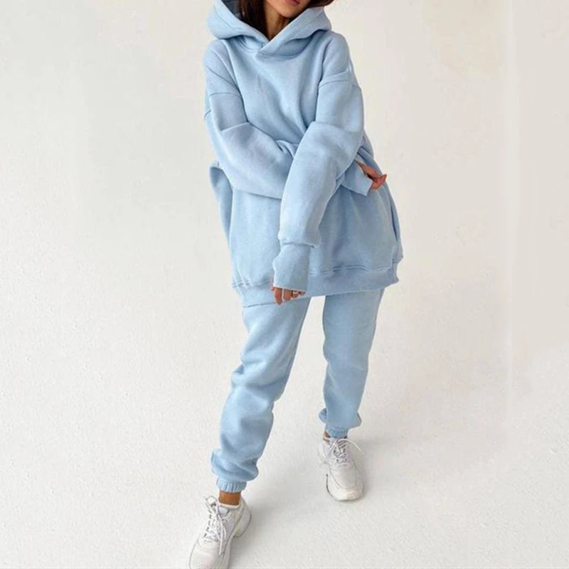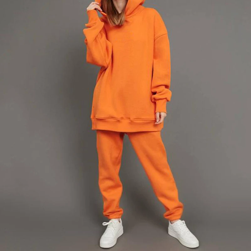 2021 Модный осенне-зимний спортивный повседневный костюм, женская одежда, комплект из 2 предметов, спортивный костюм, пуловер с длинным рукавом, толстовка с капюшоном и брюки