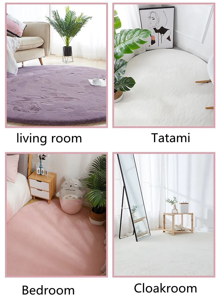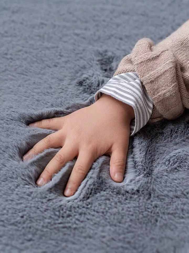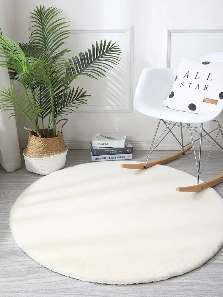 Круглый серый мягкий и пушистый ковер для гостиной из искусственного кроличьего меха, плюшевый прикроватный коврик, украшение для спальни, моющаяся детская подставка