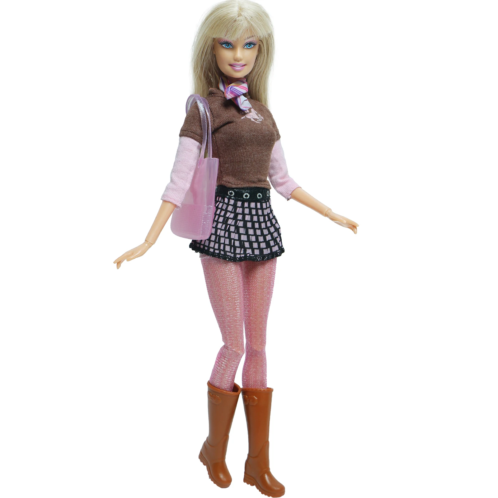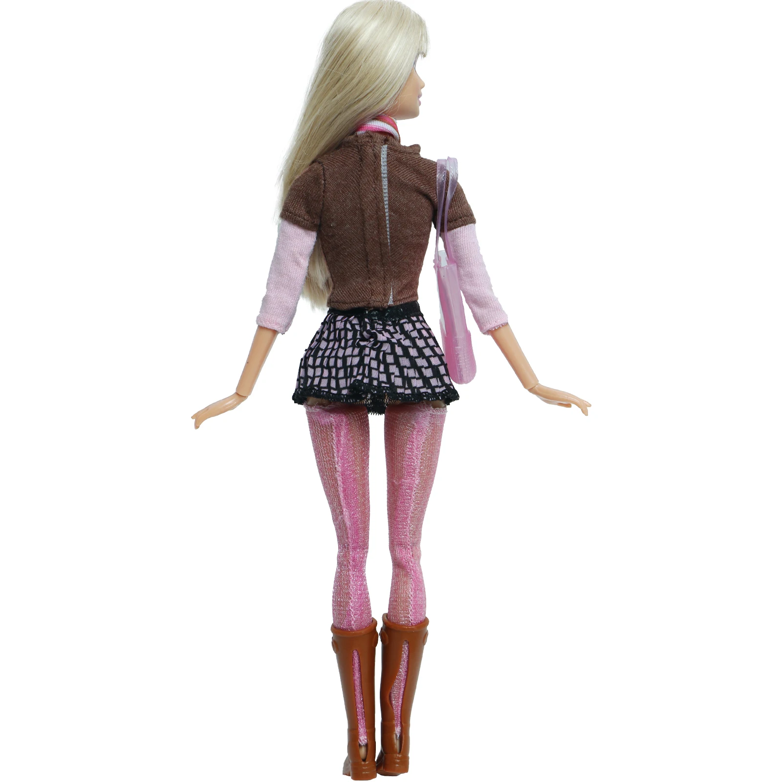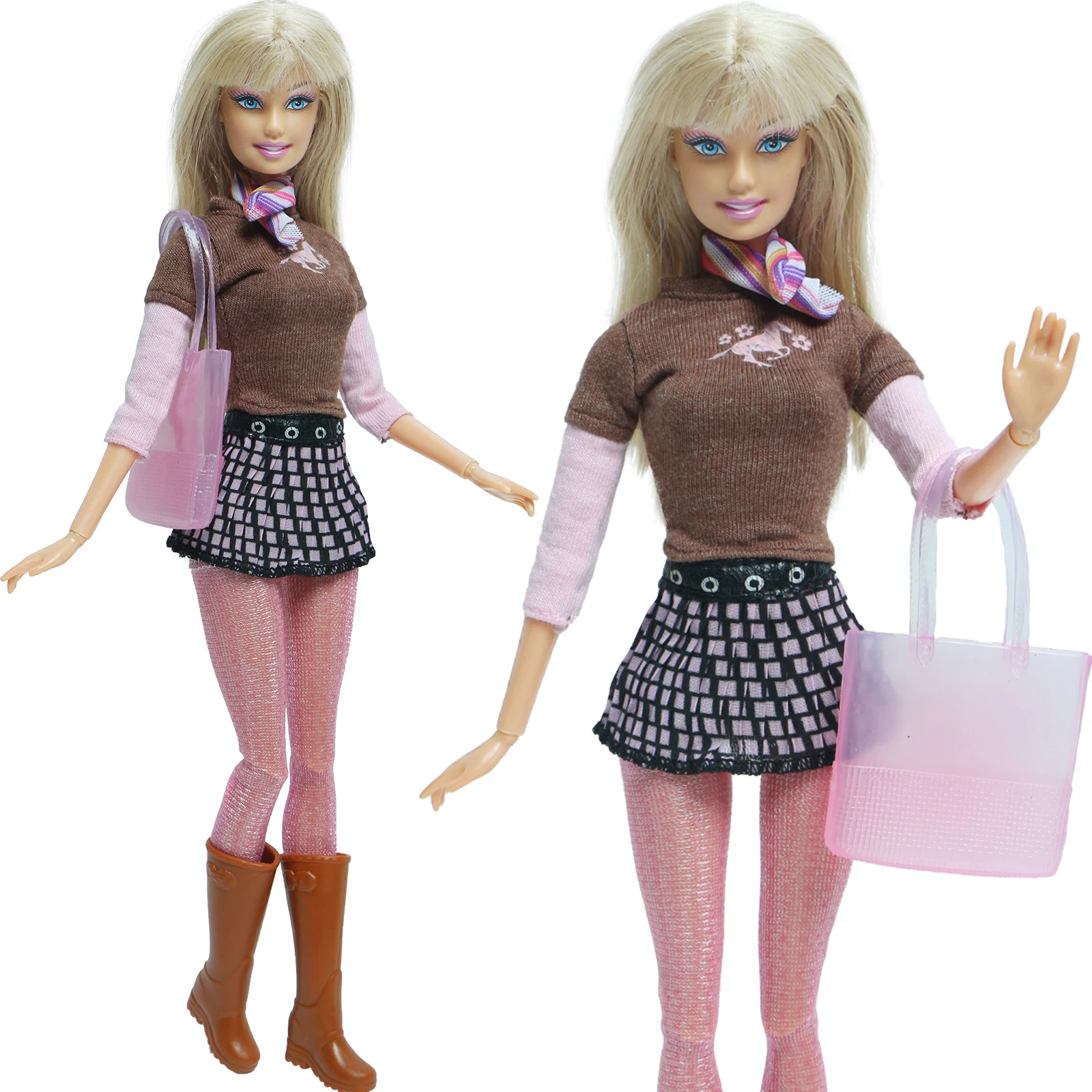 1 комплект модный наряд для куклы BJDBUS с длинными рукавами, коричневая блузка, платье, чулки, сумка, сапоги, шарф, Одежда для куклы Барби, игрушки для творчества