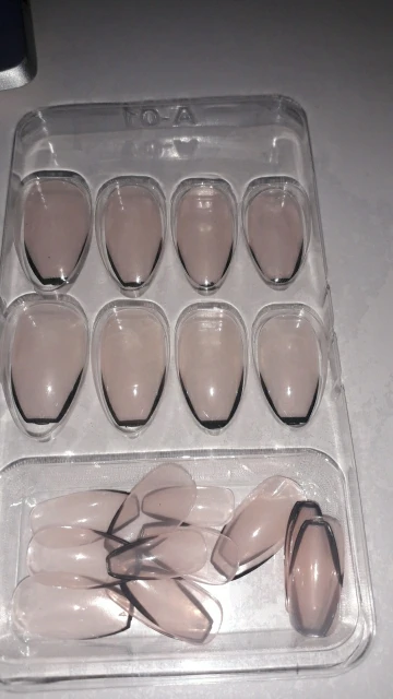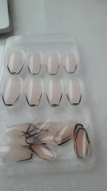 Хорошая длина, поставляется с прозрачными гелевыми наклейками + пилочка для ногтей. Ожидаемое качество для ногтей, краска выглядит так, как будто она будет чищаться легко, но я не суетится