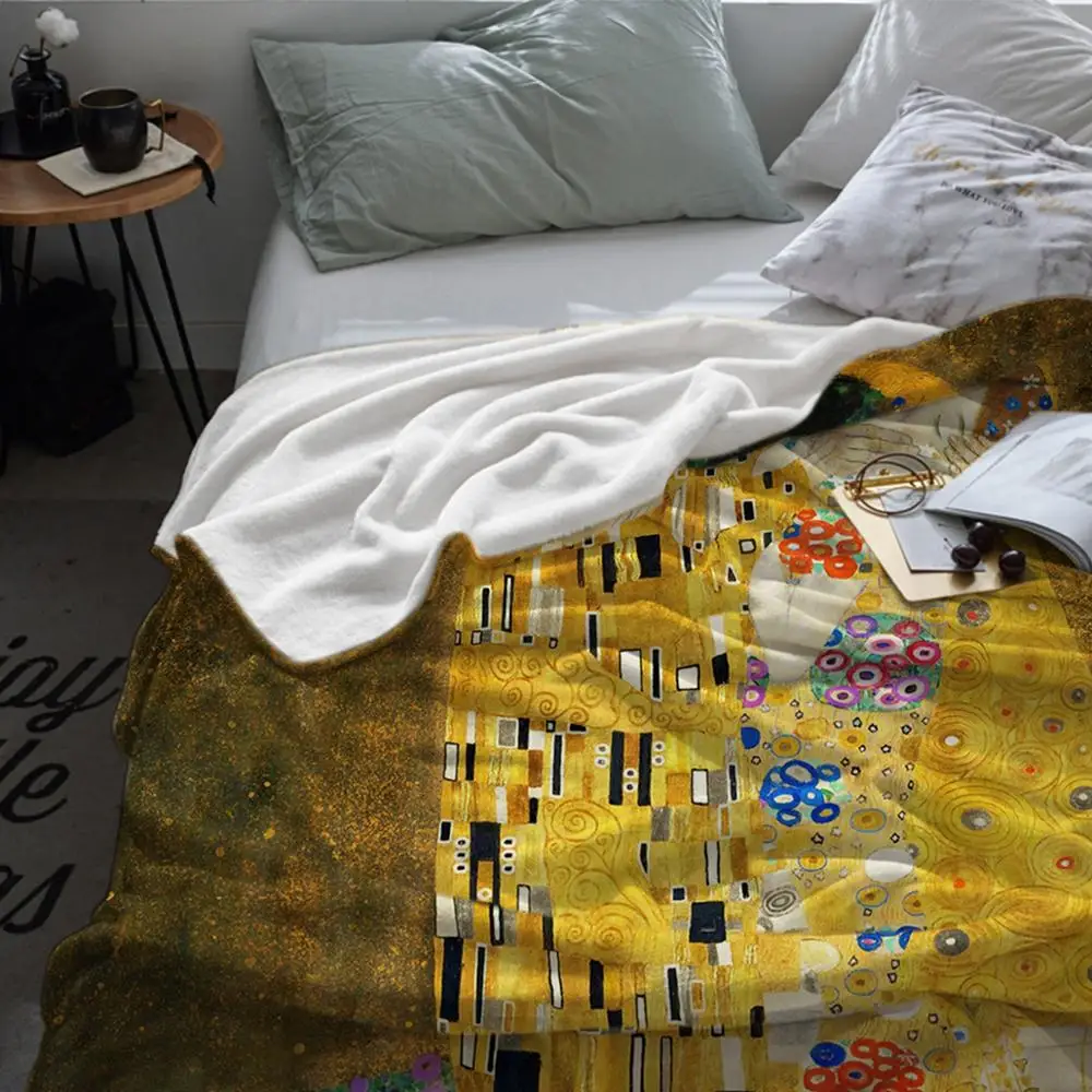 Фланелевое Одеяло Gustav Klimt The Kiss s, супермягкое уютное покрывало, теплое покрывало для путешествий, чехол на диван