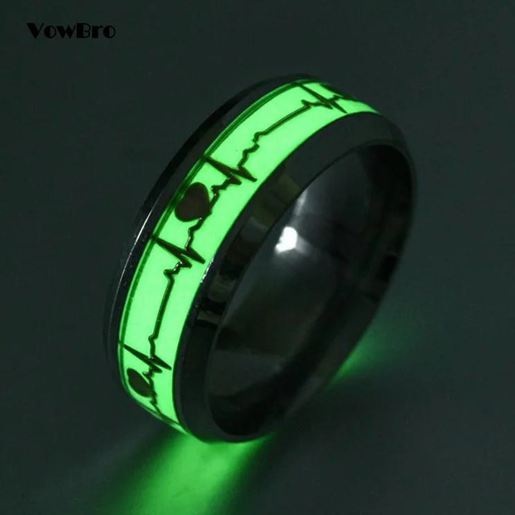 Светящееся кольцо VowBro, черное модное мужское минималистичное кольцо из нержавеющей стали, светящееся кольцо для пары, Черный Властелин