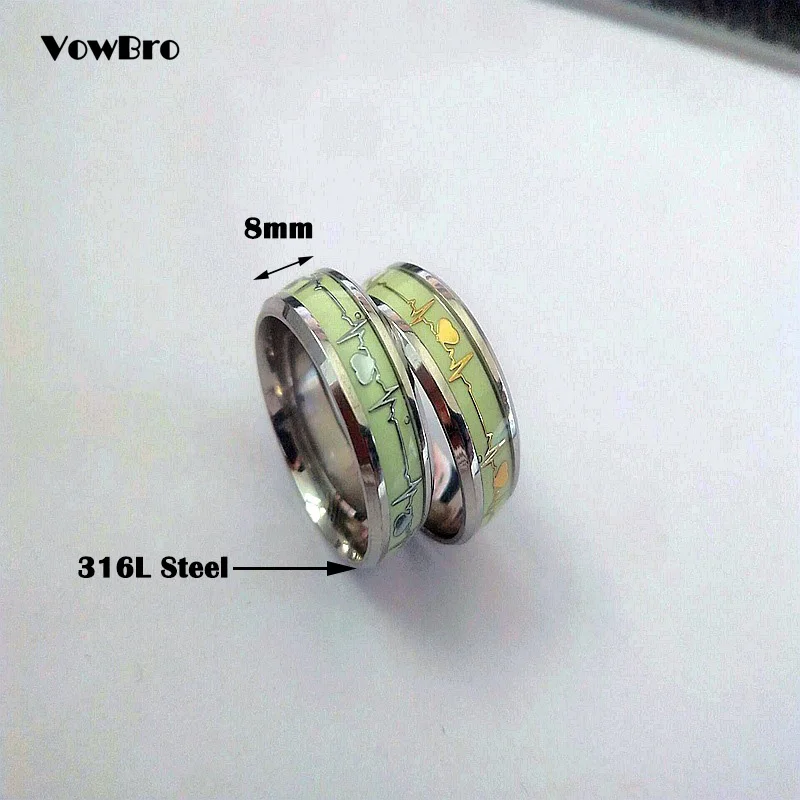 Светящееся кольцо для пар, светящееся в темноте из нержавеющей стал...