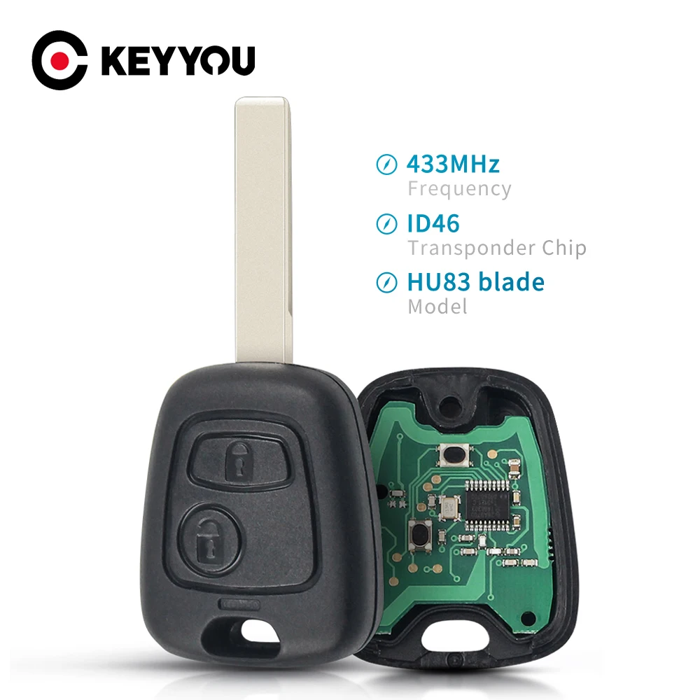 KEYYOU 2 кнопки 433 МГц PCF7961 чип дистанционное управление автомобильным ключом для Citroen C1 C2 C3 для Peugeot 106 206 306 307 207 407 Partner