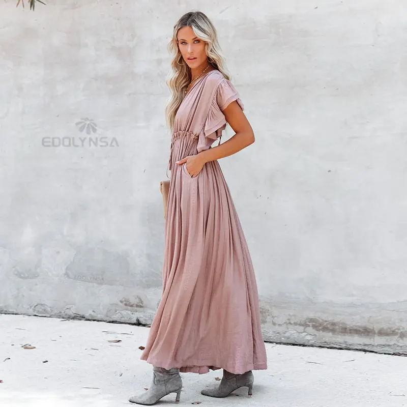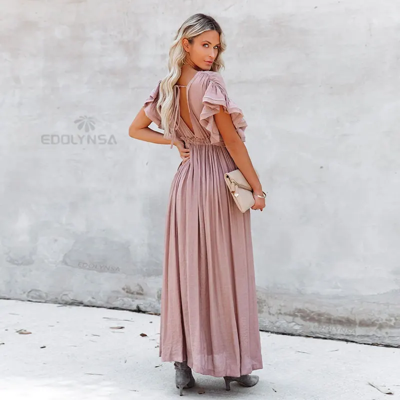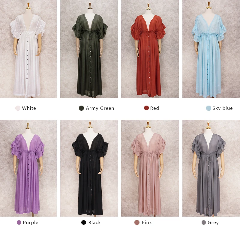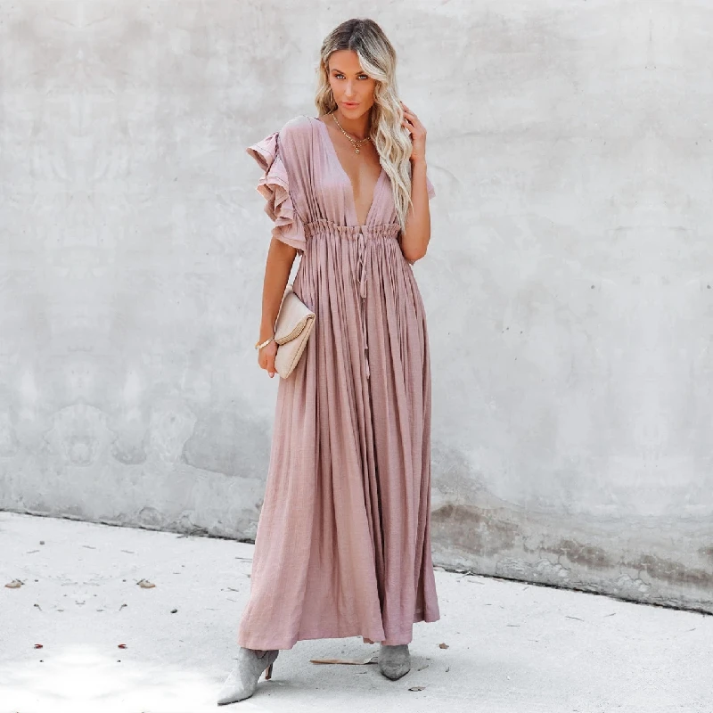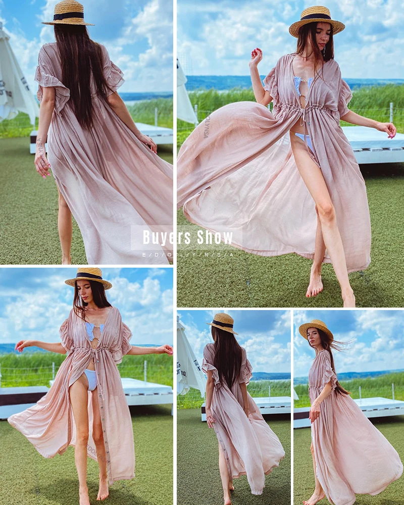 Женское пляжное платье с глубоким V-образным вырезом и рукавом-бабочкой