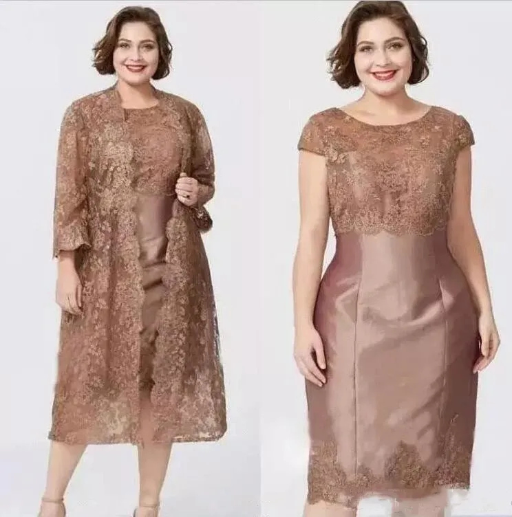 Женское атласное платье для матери невесты, коричневое платье-футляр с длинным рукавом, вечернее платье для жениха, 2 комплекта