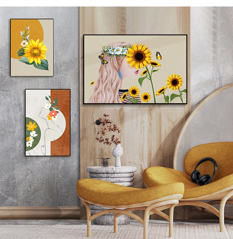 Абстрактная Картина на холсте с изображением растений подсолнухов