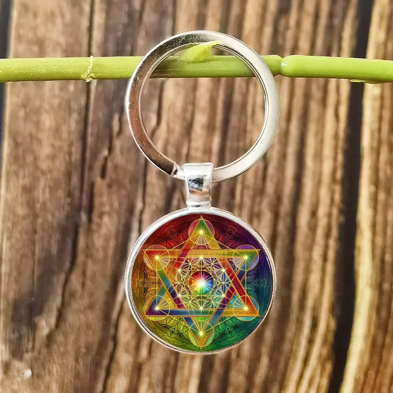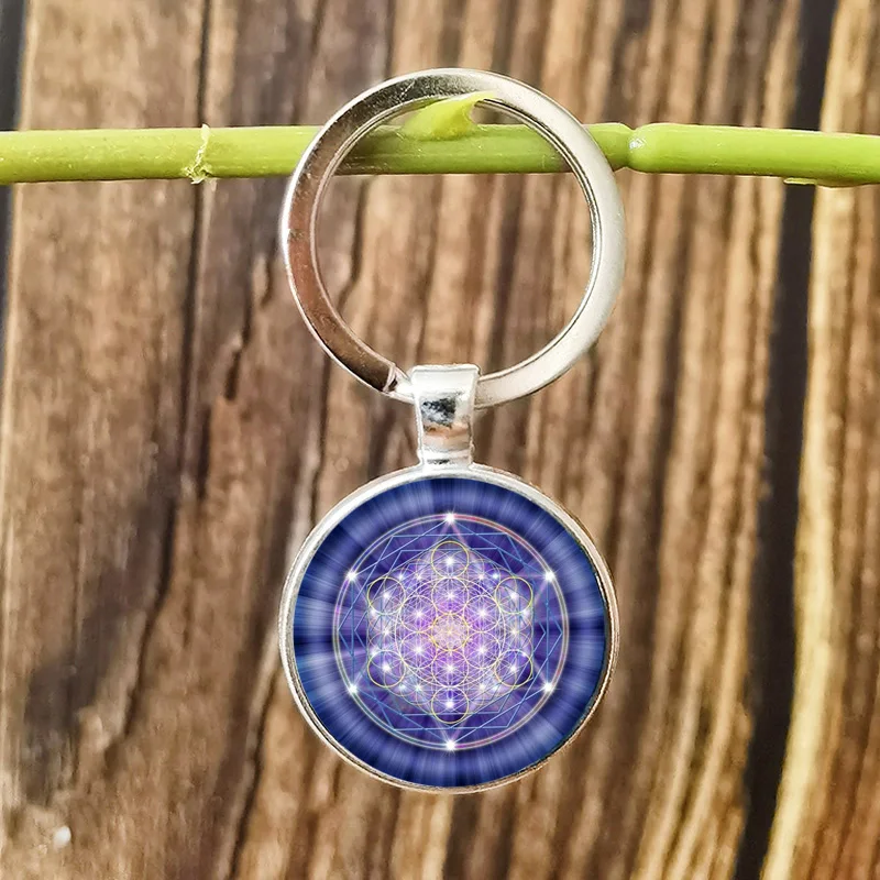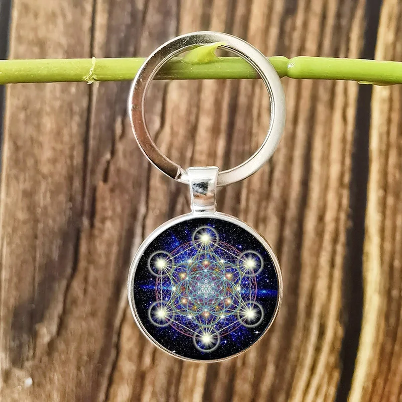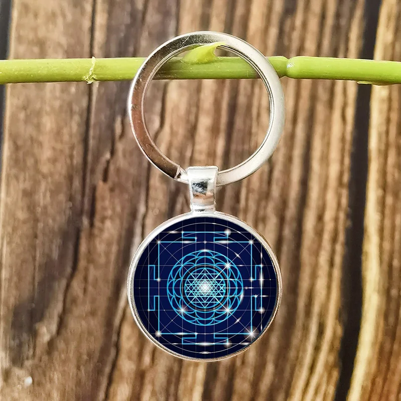 Кубический брелок FIMAODZ Metatron, брелок с кулоном из шри-Янтры, с изображением священного геометрического цветка жизни, со стеклянным узором, брелок для ключей из сплава