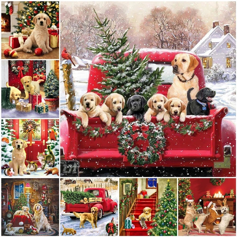 DIY 5D алмазная живопись, животные, Рождественская собака, искусство, мозаика, вышивка крестиком, наборы для домашнего декора, Рождество