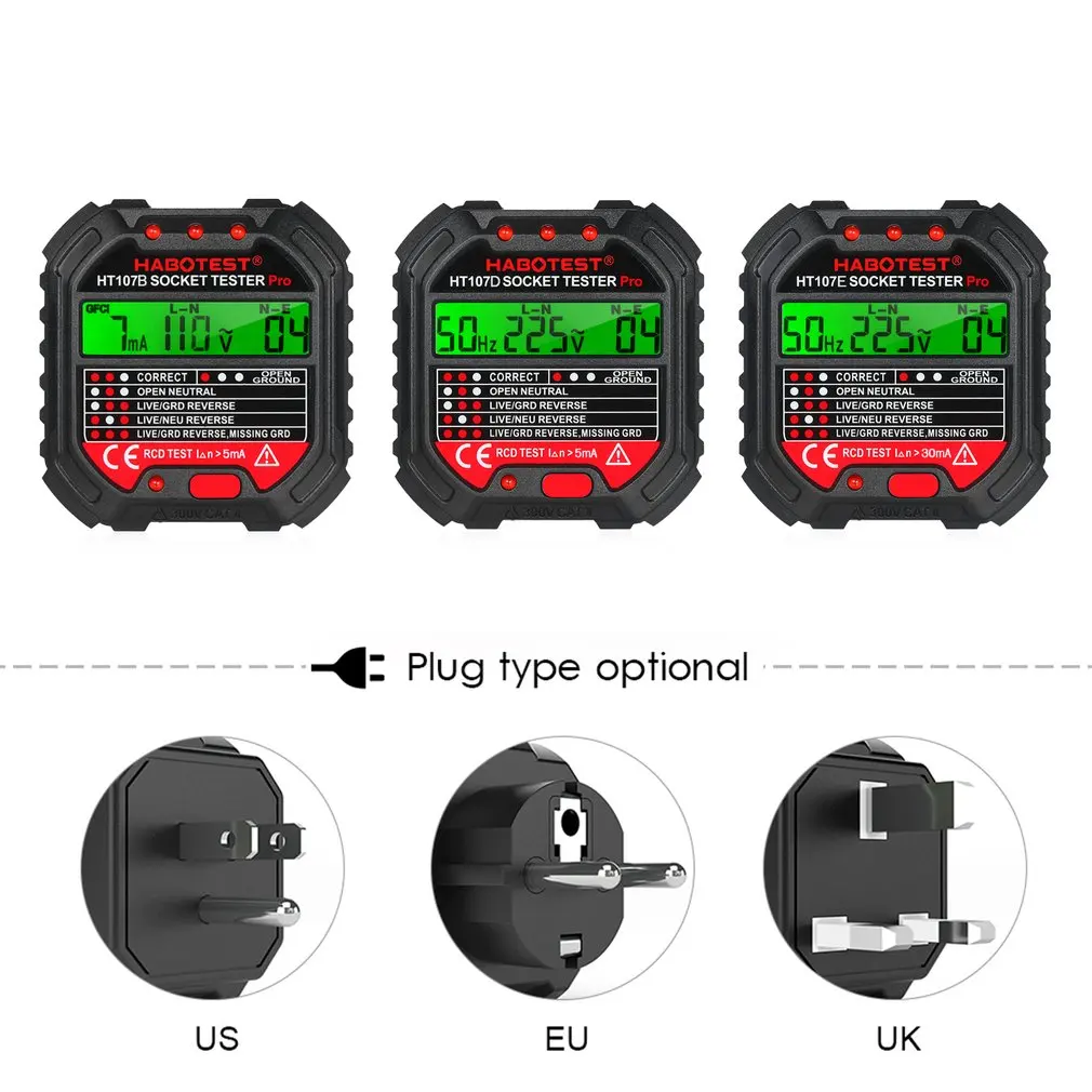 Тестер электрической цепи HABOTES GFCI 90-250 В, тестер электрической цепи, детектор напряжения HT107D