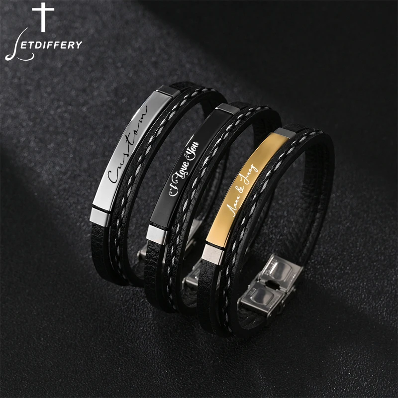 Многослойные кожаные браслеты letdiffy, индивидуальная гравировка, нержавеющая сталь, повседневные персонализированные Парные браслеты, ювелирные изделия для мужчин