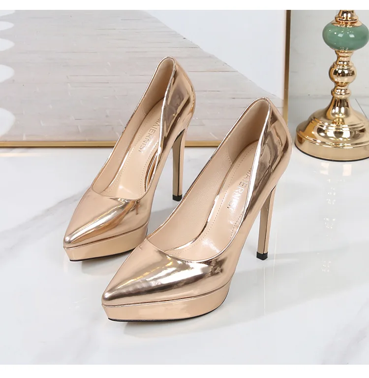 Туфли-лодочки женские на платформе, водонепроницаемые пикантные, высокий каблук, серебристые, для вечеринки, 44 45 46