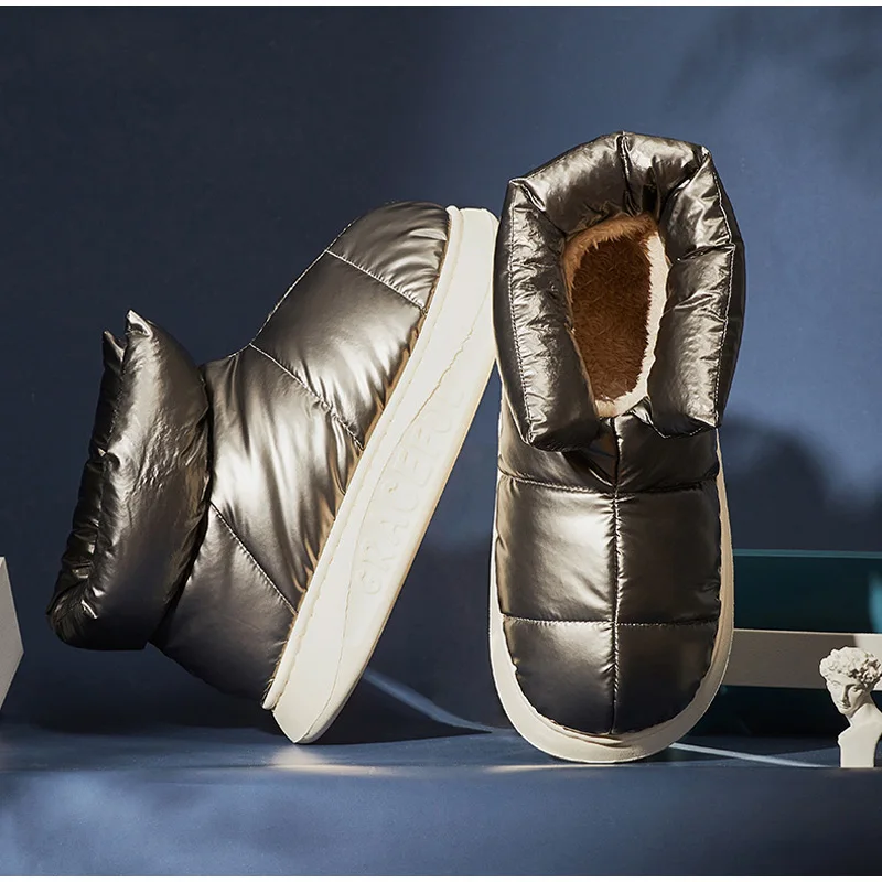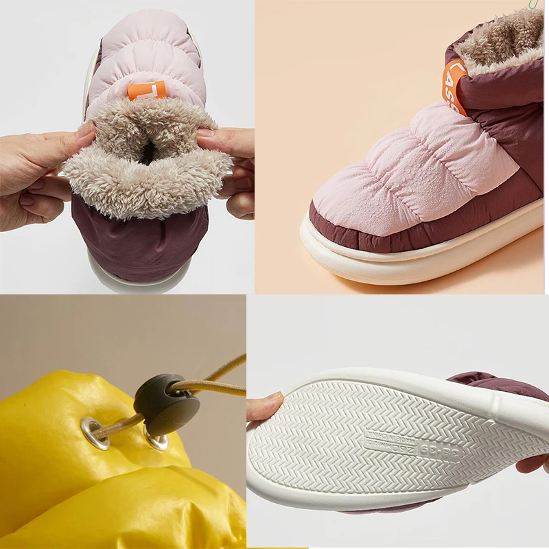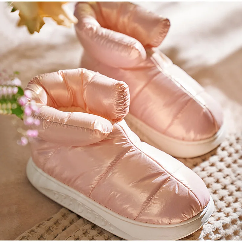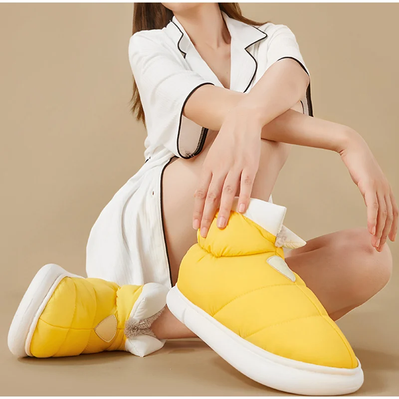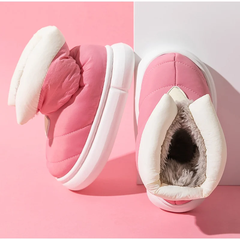 Зимние женские домашние тапочки, пуховая теплая плюшевая Водонепроницаемая женская обувь для дома и улицы, прошитая толстая подошва, нескользящая женская обувь, Новинка