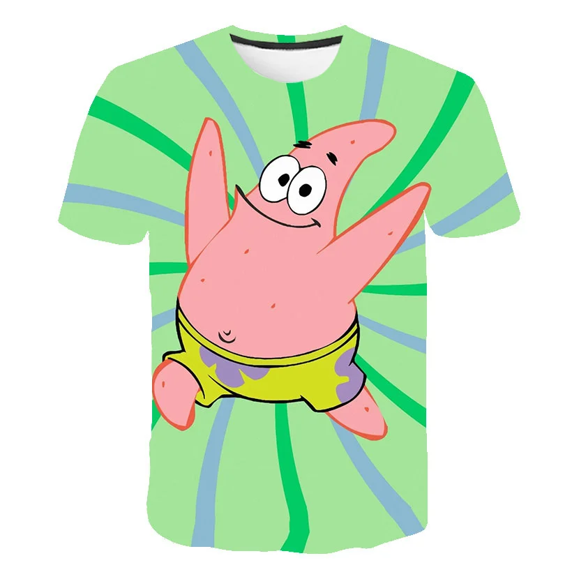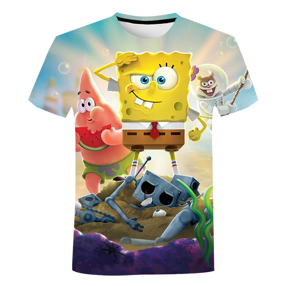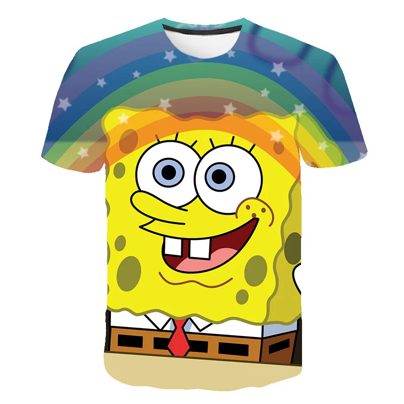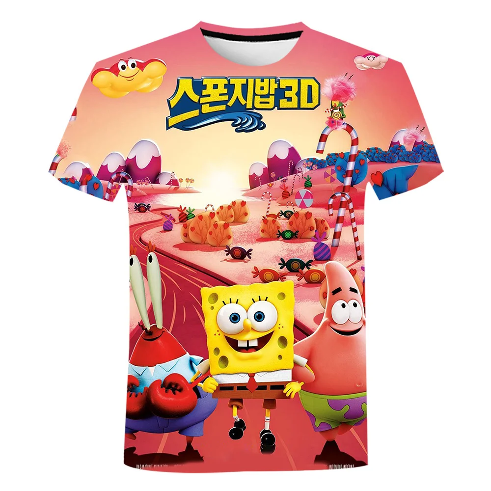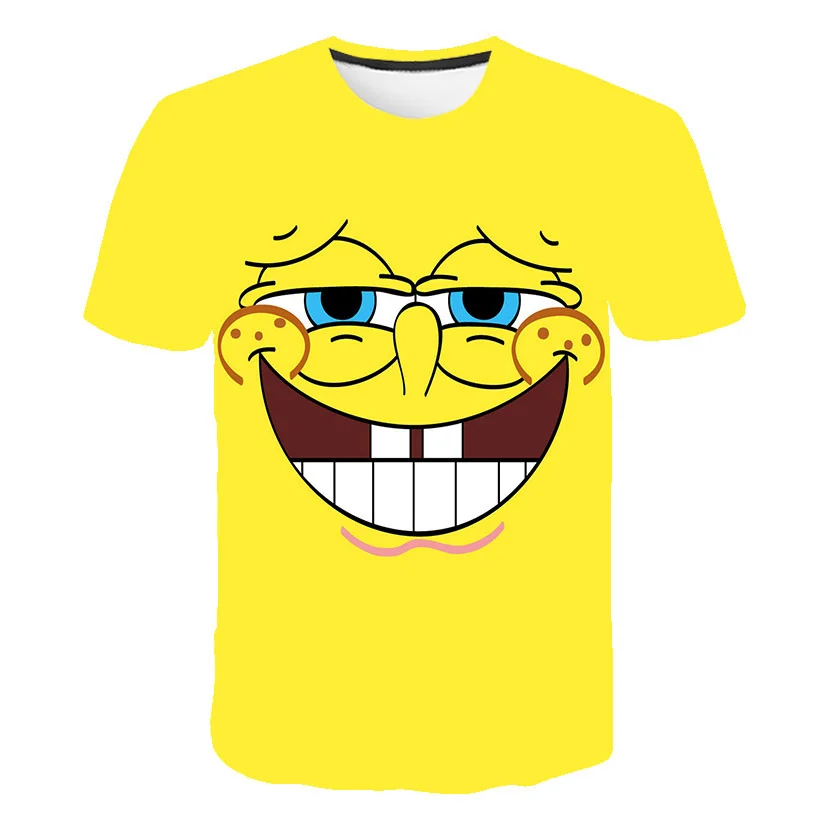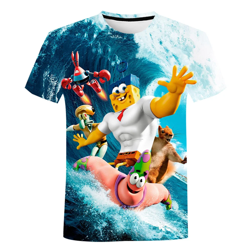 Детская одежда Губка Боб, топы, футболка для мальчиков, футболки с 3D принтом, забавная аниме футболка с коротким рукавом, футболка для маленьких девочек S02