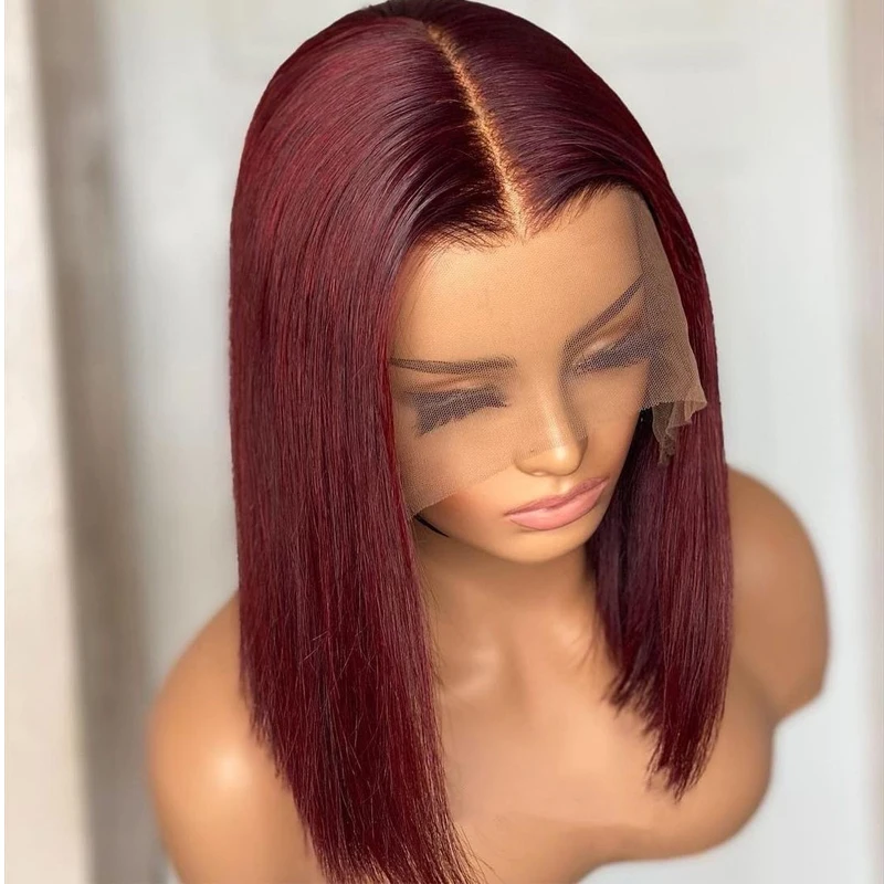 Парик Боб бордового цвета 99J, короткие прямые парики из человеческих волос, T-часть, парик на сетке для черных женщин, предварительно выщипанный красный передний парик на сетке