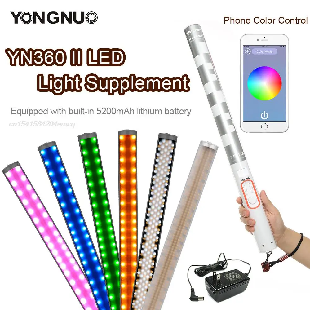 YONGNUO YN360 II Pro RGB цветная ручная Светодиодная лампа для видеосъемки, 5200 мАч, температура 3200K-5500K, управление светодиодами через приложение для телефона