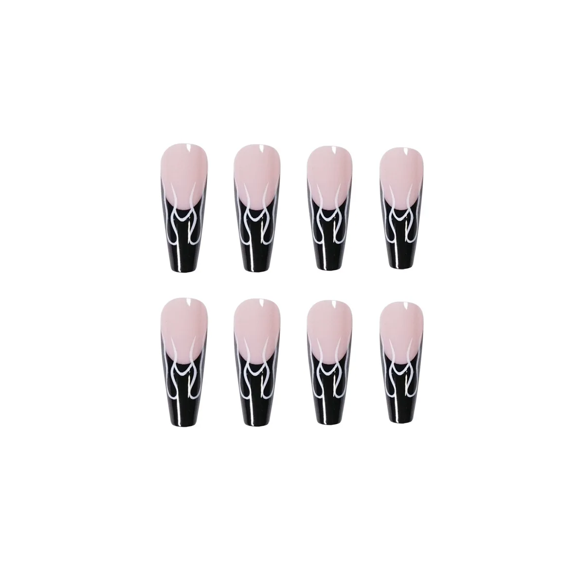 Длинные накладные ногти с балерином, французские розовые стразы, ди...