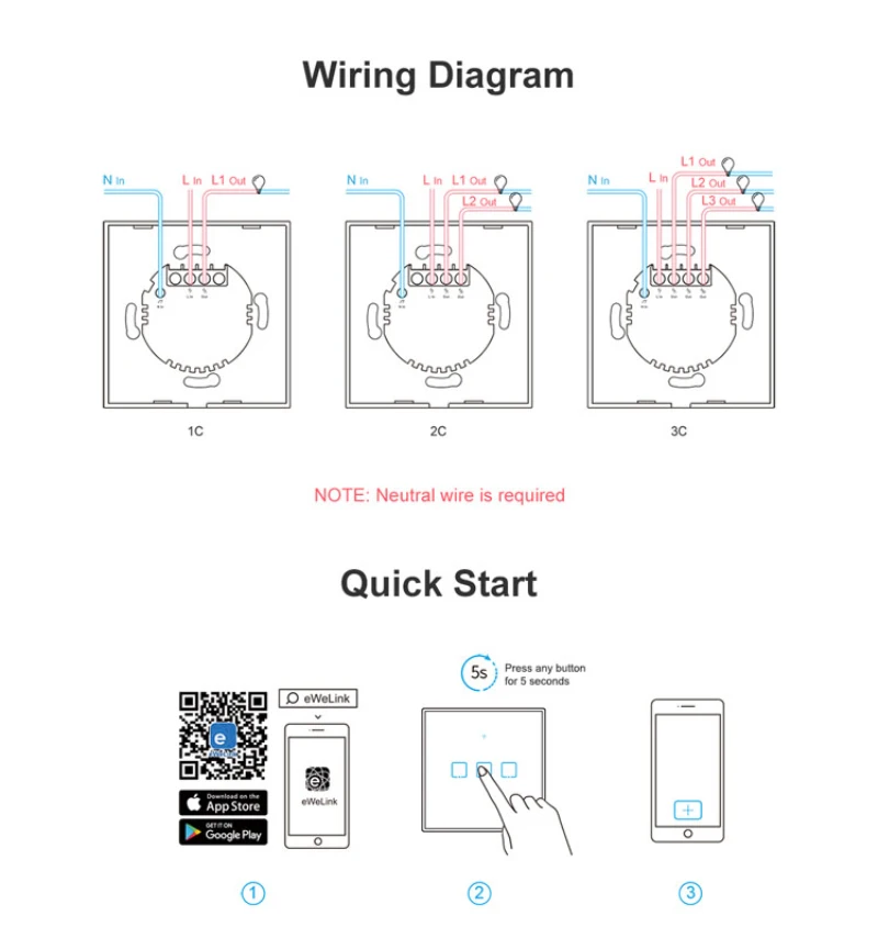 Номер моделиSONOFF T2 WiFi smart Wall Switch